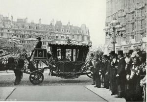 Na een stadhouderloos tijdperk nam Willem III de nieuwe Karos van Staat in gebruik, al ‘zag zij haar glans door den luister van zijne hofhouding overscheenen’, met andere woorden Willem III bezat als stadhouder van Nederland en koning van Engeland nog veel fraaier gerij. Terwijl de Nederlandse Karos van Staat in 1796 in brand vloog en de as opgeveegd in de hoop er nog goud in aan te treffen, brengt ons dat naar Engeland. Is daar iets achtergebleven van ons goudenkarosverleden? Drie gouden koetsen heeft dat koninkrijk en warempel, de oudste daarvan is gebouwd in opdracht van ónze koning-stadhouder. Het is de Speaker’s State Coach uit 1698. Dat gevaarte maakte indruk in zijn tijd, want de Opregte Leydse Courant (18-12-1702) omschrijft hem als ‘by uytnemendheyt zwaar verguld, en van 8 schoone Paerden getrokken’. Voor het ontwerp tekende Daniël Marot in Den Haag, dezelfde man die Paleis het Loo ontwierp. Daniël Marot en zijn familie waren als hugenoten Frankrijk ontvlucht en kwamen naar Nederland, waar Marot de Louis XIV-stijl in de mode bracht, en uiteindelijk ook zou sterven. Hij tekende ontwerpen van bed tot tapijt, karos tot paleis. En in het kielzog van de koning-stadhouder reisde Daniël Marot mee naar Engeland. Een Nederlandse opdrachtgever, een half-Nederlandse ontwerper, mogen we daarmee een Nederlandse claim leggen op de oudste Engelse gouden koets? Jammer dat hij wel degelijk in Engeland is gebouwd en op het rechterpaneel de figuur Britannia prominent is afgebeeld, terwijl aan de achterzijde naast Willem III ook zijn vrouw Mary, aan wie hij de Engelse troon te danken had, en opnieuw Britannia zijn afgebeeld. Het zou een grappige, maar valse claim zijn op de karos die in 2011 in opdracht van de Speaker of the House of Commons, de legendarisch John Bercow (die van ‘oder, oder!’) naar het rijtuigmuseum van Arlington Court is verhuisd.