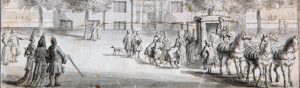 Uitsnede van een tekening door Daniël Marot uit circa 1700, van een aanspanning voor