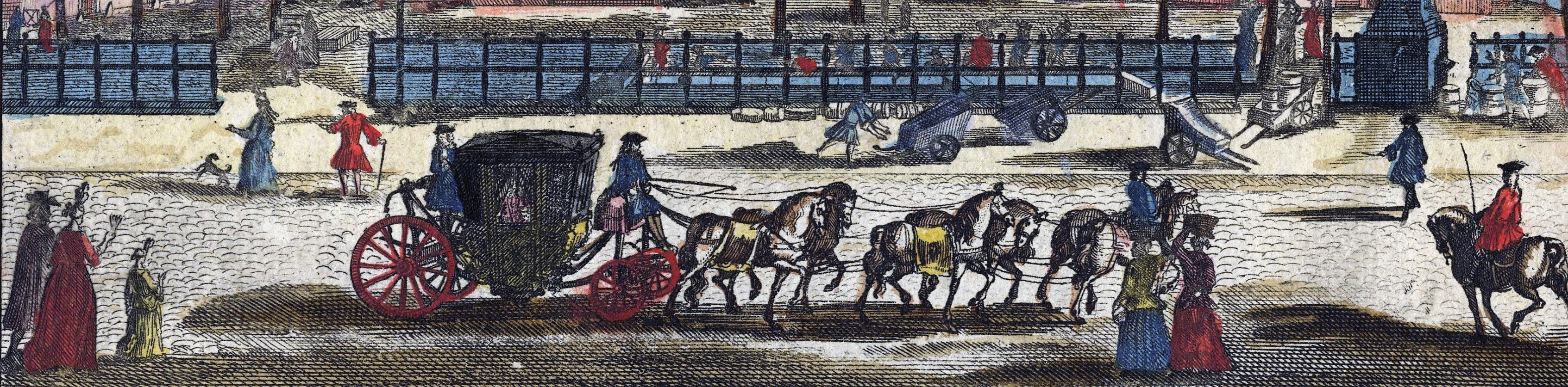 Uitsnede van een tekening door Daniël Marot uit circa 1730, van een karos voor