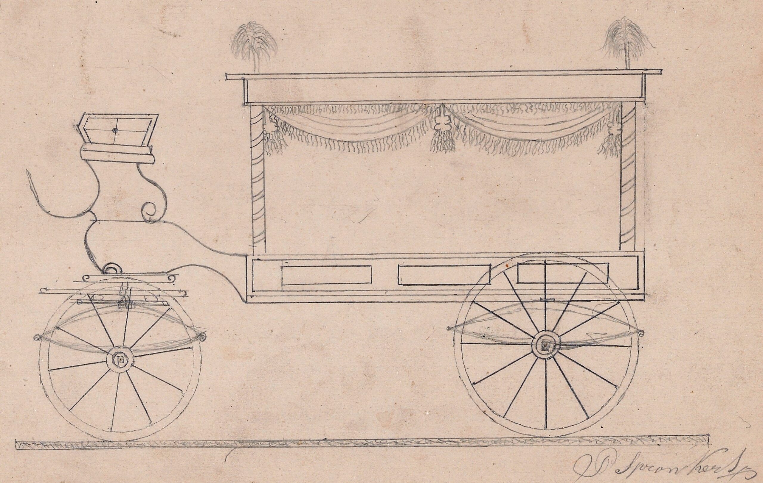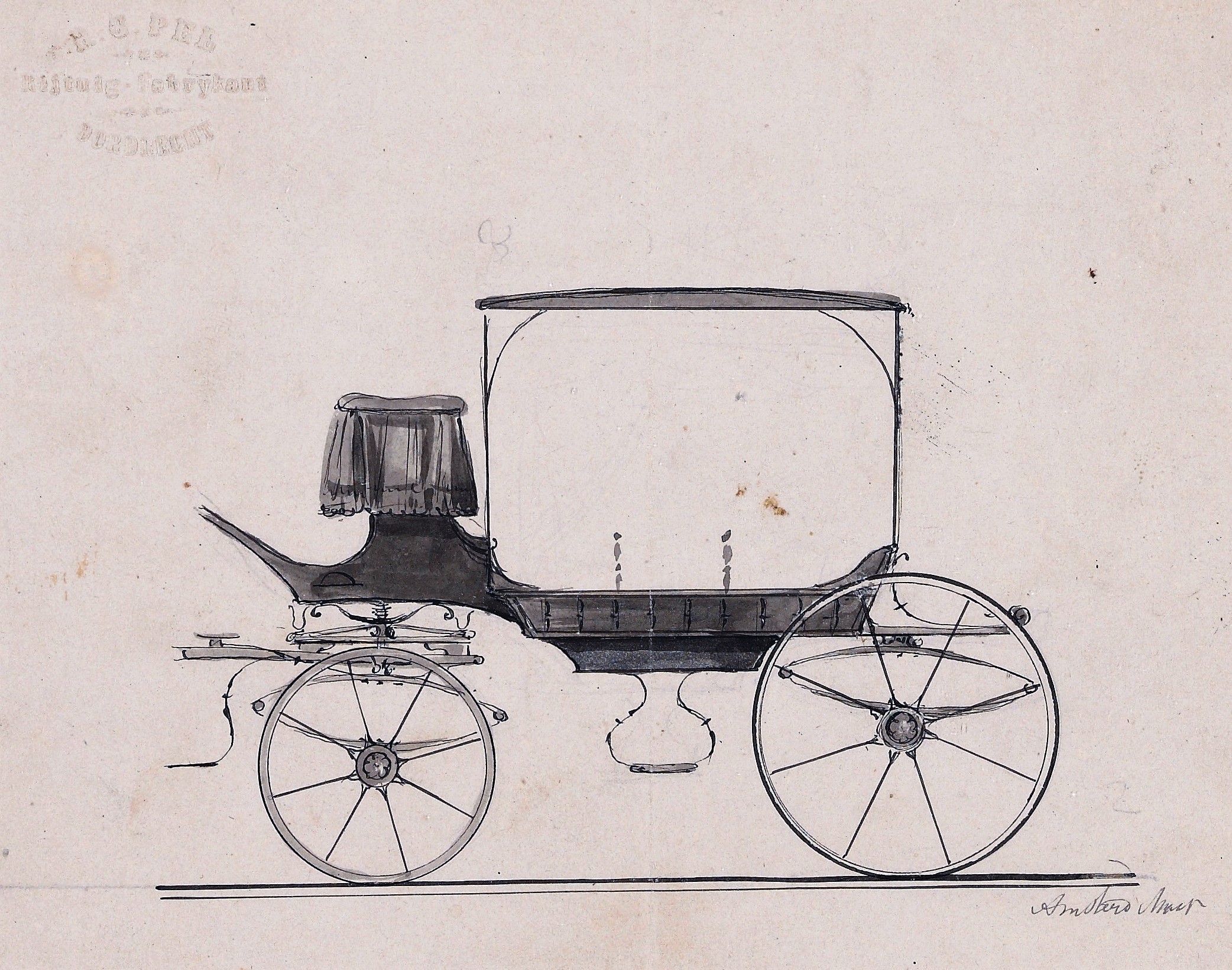 In de gemeentelijke prentenverzameling van Dordrecht zijn vijf tekeningen in pen, penseel en potlood, gestempeld met ‘R.G. Pel Rijtuig-fabrikant Dordrecht’. Het zijn fraaie ontwerpen van rouwrijtuigen uit de periode 1860-1870, die getuigen van de kwaliteit van de fabrikant.