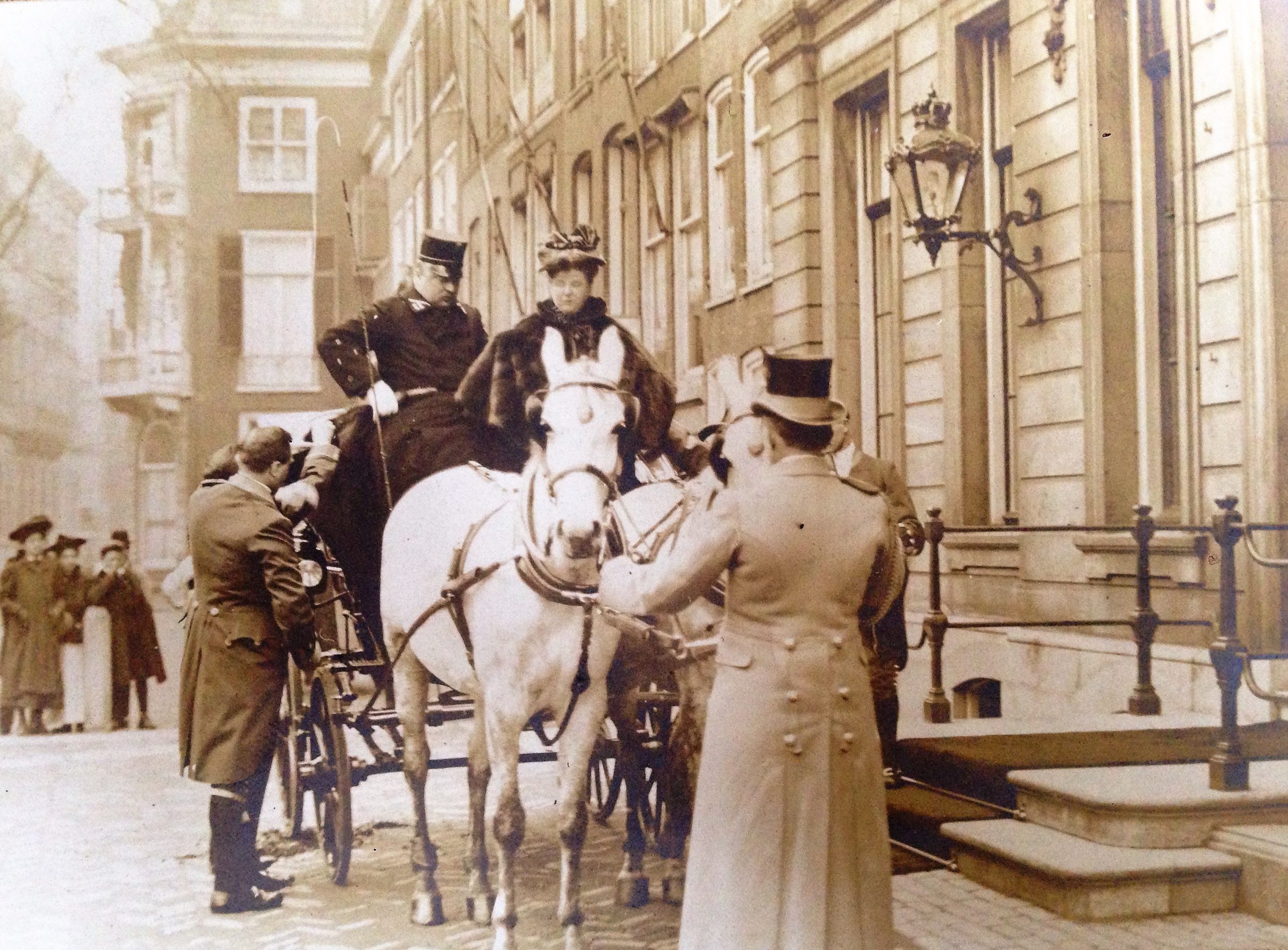 hier voor het paleis van koningin-moeder Emma aan het Lange Voorhout.