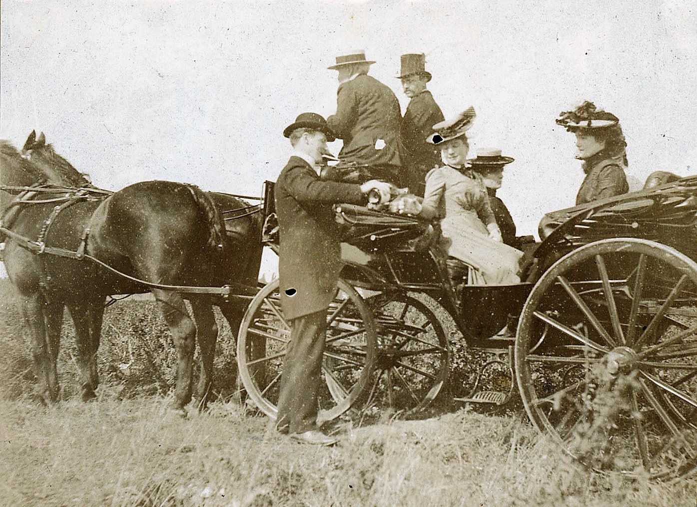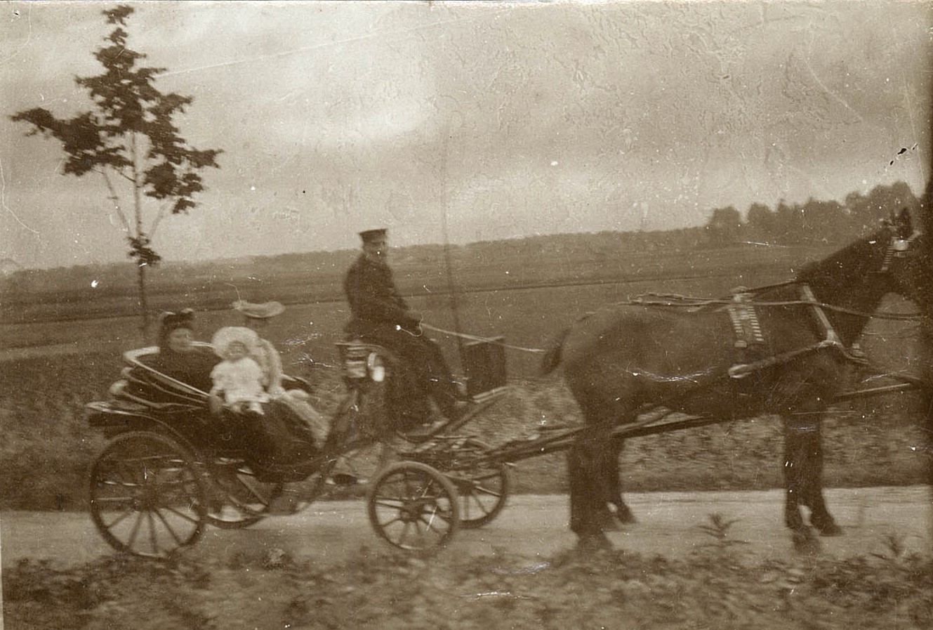Wat de foto’s in het archief aantonen is wat de kranten niet berichten. Een ongeluk met een rijtuig haalt de krant, de ontelbare ritjes die vooral plezierig waren doen dat nooit. Maar ook in deze familie zijn er momenten geweest van een stralend jong gezinnetje op de dogcart en proostend in de vis-à-vis met de koetsier op de bok, ergens in de velden. We moeten er alleen wat fantasie voor gebruiken, omdat het niet in woorden is vastgelegd.