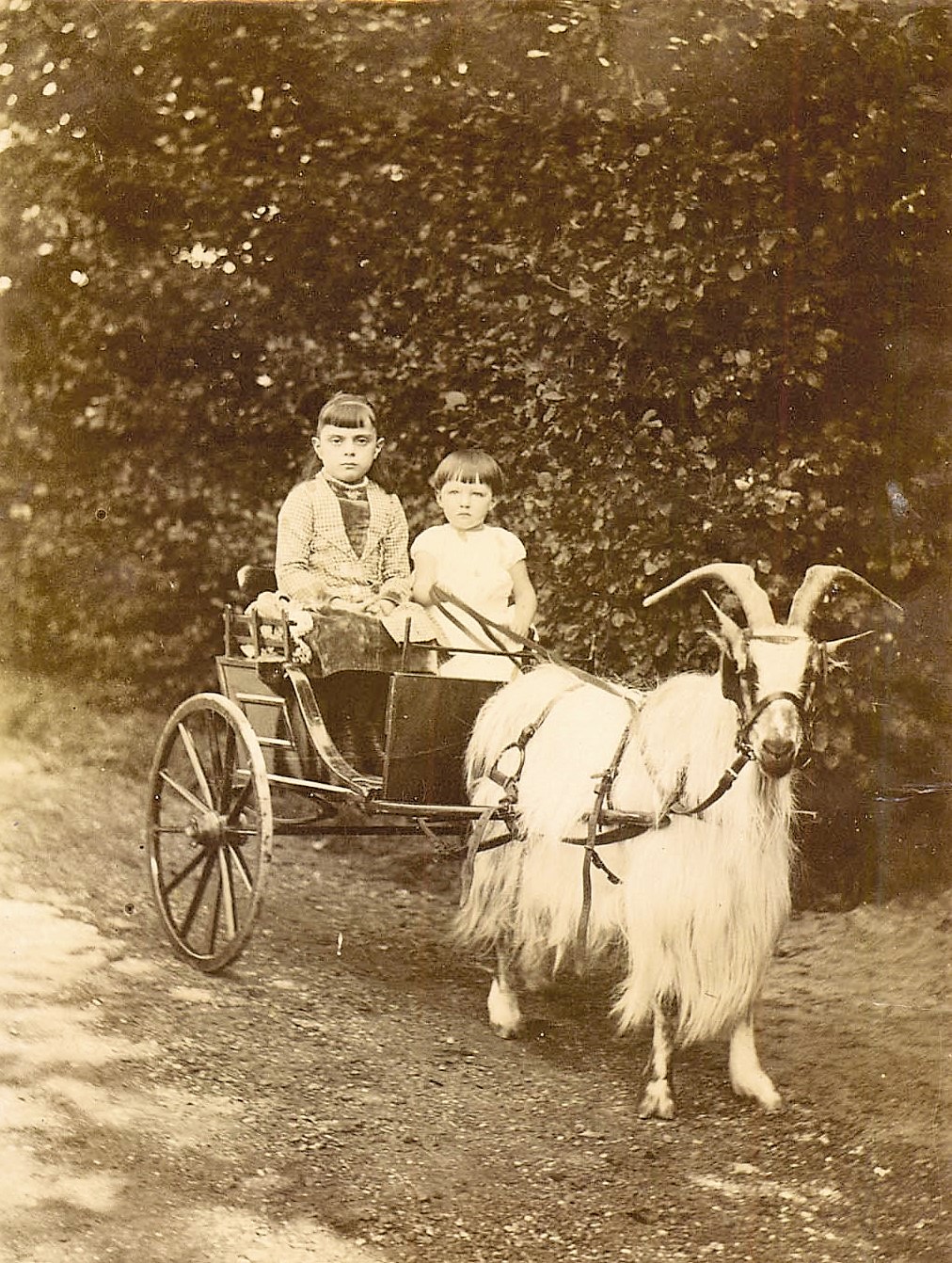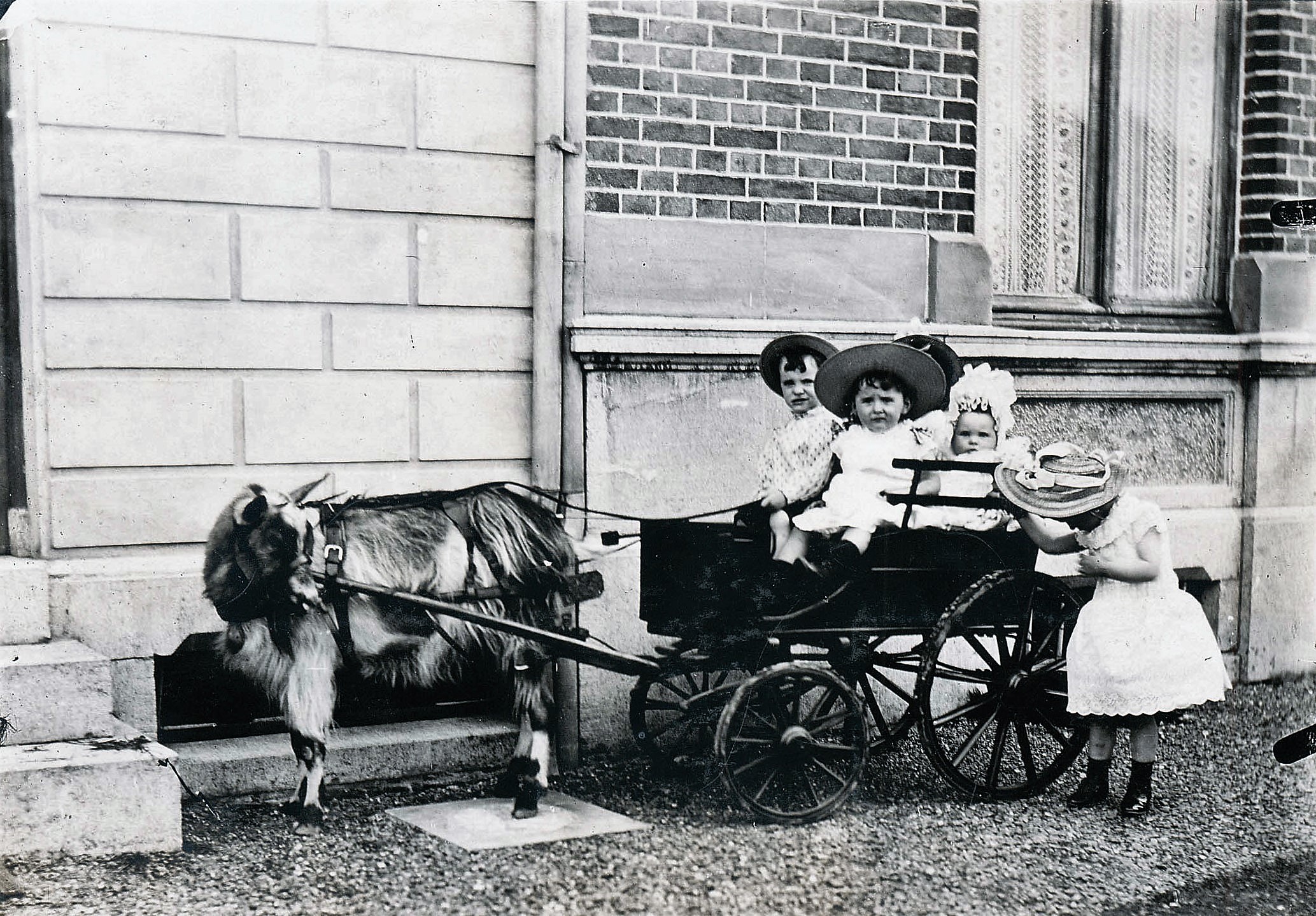 De foto rechtsboven is duidelijk geënsceneerd met spelende kinderen, bokkenkar