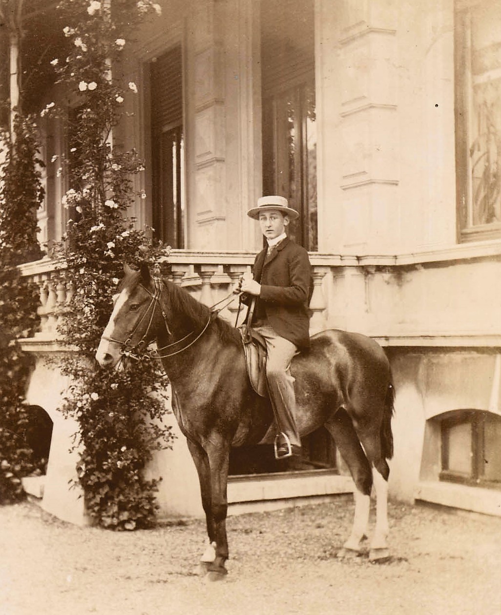 Alfons, zoon van Gustaaf en Louise Petry, te paard op Villa Kanjel.