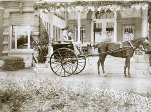 de Maisieres in een dogcart voor Villa Wijckerveld.