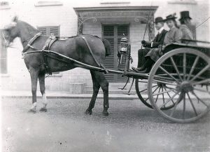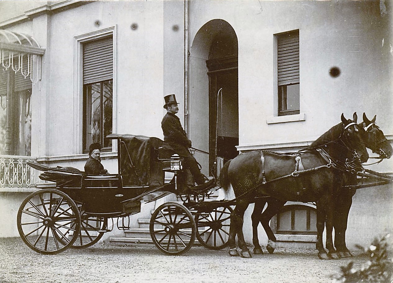 In de fotoalbums van de familie Regout, die worden bewaard in het Regionaal Historisch Centrum Limburg, zitten verscheidene kiekjes die een indruk geven van hoe een gegoede familie in het autoloze tijdperk gebruikmaakte van paarden en rijtuigen. In plaats van een garage was er een koetshuis, een stalling voor paarden en een woning voor de koetsier. Zo’n equipage was noodzaak om op een fatsoenlijke manier ergens te komen.