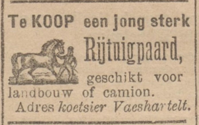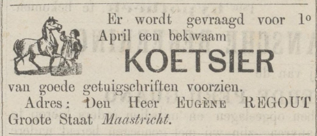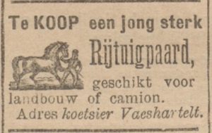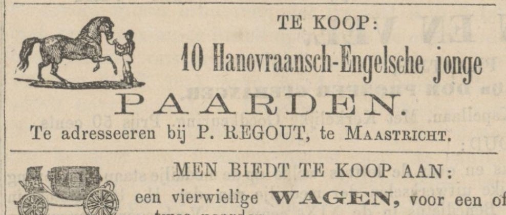 Ook een koetspaard bij Regout moest functioneel zijn. Limburger Koerier 5-5-1898.