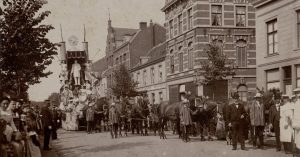 De Limburgse Koerier doet in 1905 verslag van de historische optocht in Maastricht: “Ongeveer iedere eeuw was door een karakteristieke groep vertegenwoordigd, van af het bouwen der brug, waaraan de stad haar naam ontleende, onder Tungeri Bethasiers & Romeinen in de eerste eeuw onzer jaartelling, tot en met 1834, de stichting der wijdvermaarde glas- en aardewerkfabrieken door Petrus Regout, welke fabrieken thans alle worden aangeduid met den naam de Sphinx, terwijl een praalwagen de apotheose van den stichter voorstelt. Deze wagen, een pronkjuweel van architectuur, hoog 9 meter, zal door twaalf paarden getrokken worden. Het beeld van Petrus Regout, meer dan levensgroot, zal door allegorische figuren omringd worden.” Uiteindelijk trokken acht paarden Petrus’ praalwagen voort, gelijk het aantal van een koning.