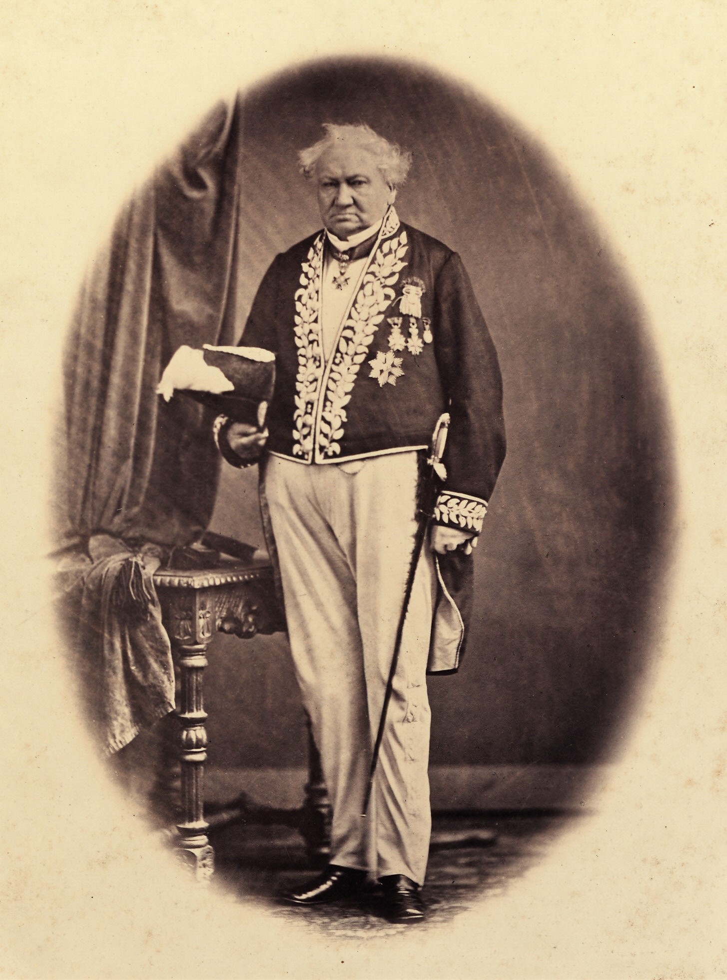 Petrus Regout in het galakostuum als lid van de Eerste Kamer, in een calèche voor Vaeshartelt,