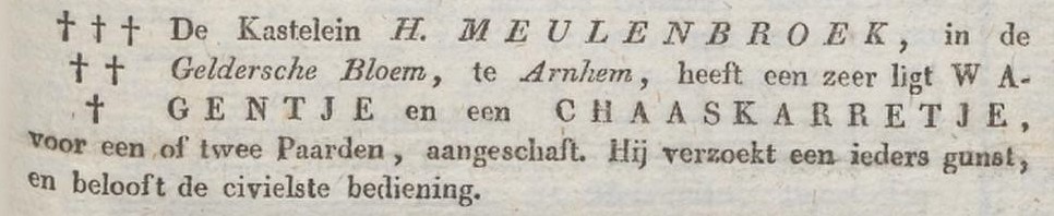 En de jonge heren krijgen er een erfenis bij, nadat een neef van moederszijde komt te overlijden: Albert Meulenbroek, degene die de stalhouderij van grootvader Aalbert had overgenomen. Grootvader Aalbert Meulenbroek had als kastelein van de Geldersche Bloem in juli 1821 een ‘zeer ligt wagentje en een chaaswagentje’ aangeschaft om tegen betaling passagiers te vervoeren en maakte daarmee een start in de vervoersbranche die tot op de dag van vandaag doorwerkt.