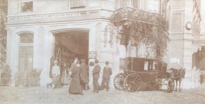 Trouwrijtuigen van de Nieuwe Rijtuigmaatschappij in Den Haag.