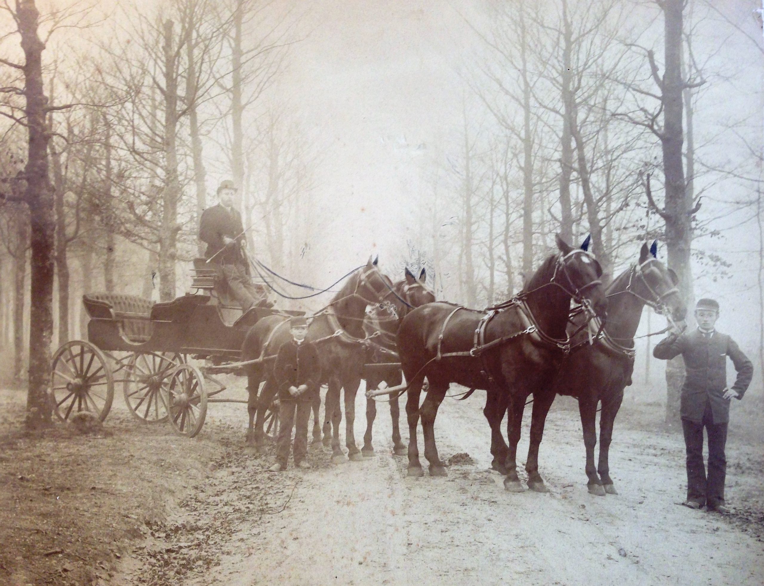 Vierspan van een Arnhemse buitenplaats, met grote, luxe koetspaarden geleverd door Riemer.