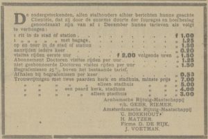 Vanaf dat jaar is bovendien duidelijk dat de stalhouders van de stad, ook de Riemers, serieus aan kartelvorming doen en dat blijven doen tot in de 20ste eeuw, wanneer ze in een gezamenlijke verklaring in de Arnhemsche Courant op 23 september aankondigen hun prijzen te moeten verhogen vanwege de stijgende kosten. Een ritje met een vigilant naar comedy of concert kost vijftig cent, een retourtje anderhalve gulden – uiteraard ging dan het nachttarief in.