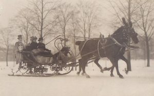 Afgelopen winter plaatste een Duitse handelaar een blauwwitte slede, gebouwd door rijtuigfabrikant Peter Scheurer uit Düsseldorf, te koop op zijn Facebookpagina. Vader Maarten en zijn zoons Martin en Henri Kuivenhoven, die als familie een passie delen voor rijtuigen en sledes, aarzelden niet om in de auto te springen en er op af te gaan. Het merk sprak hen aan en ze wisten dat de handelaar de slede van een Nederlandse liefhebber had gekocht. In januari kwam de arrenslede met kunstpaarden en schitterend bellentuig als blikvanger te staan in de monumentale bollenschuur, waar de Kuivenhovens hun collectie in hebben ondergebracht. Als een van de topstukken, tot Mario Broekhuis, onderzoeker van de stichting, vorige week een foto vond…