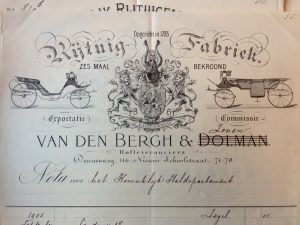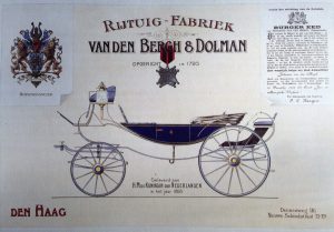 In zijn catalogus bood Van den Bergh & Dolman zo ongeveer alle gangbare luxe modellen die in Frankrijk in de mode waren. Niet apart beschreven, maar wel genoemd waren de ‘Amerikaansche sulkey’s en buggie’s’. Wanneer een klant hiervoor belangstelling had kwam waarschijnlijk een catalogus van een Amerikaanse fabriek op tafel om een rijtuig aldaar in onderdelen te bestellen. Als Van den Bergh in 1895 het eeuwfeest viert is het de oudste rijtuigfabriek van ons land. Het was naast Hermans, die notabene het vak leerde bij Van den Bergh, de voornaamste fabrikant van de residentie. Het gaat zo goed dat er plaats is voor zes rijtuigschilders. “Mogen zij, die in Nederland zich de weelde kunnen veroorloven van een equipage te houden, haar een nog veel langer leven waarborgen”, is de hoop in het ter gelegenheid van dit feit uitgegeven boekje ‘Nederland Voorheen en Thans’. Maar het kan verkeren.