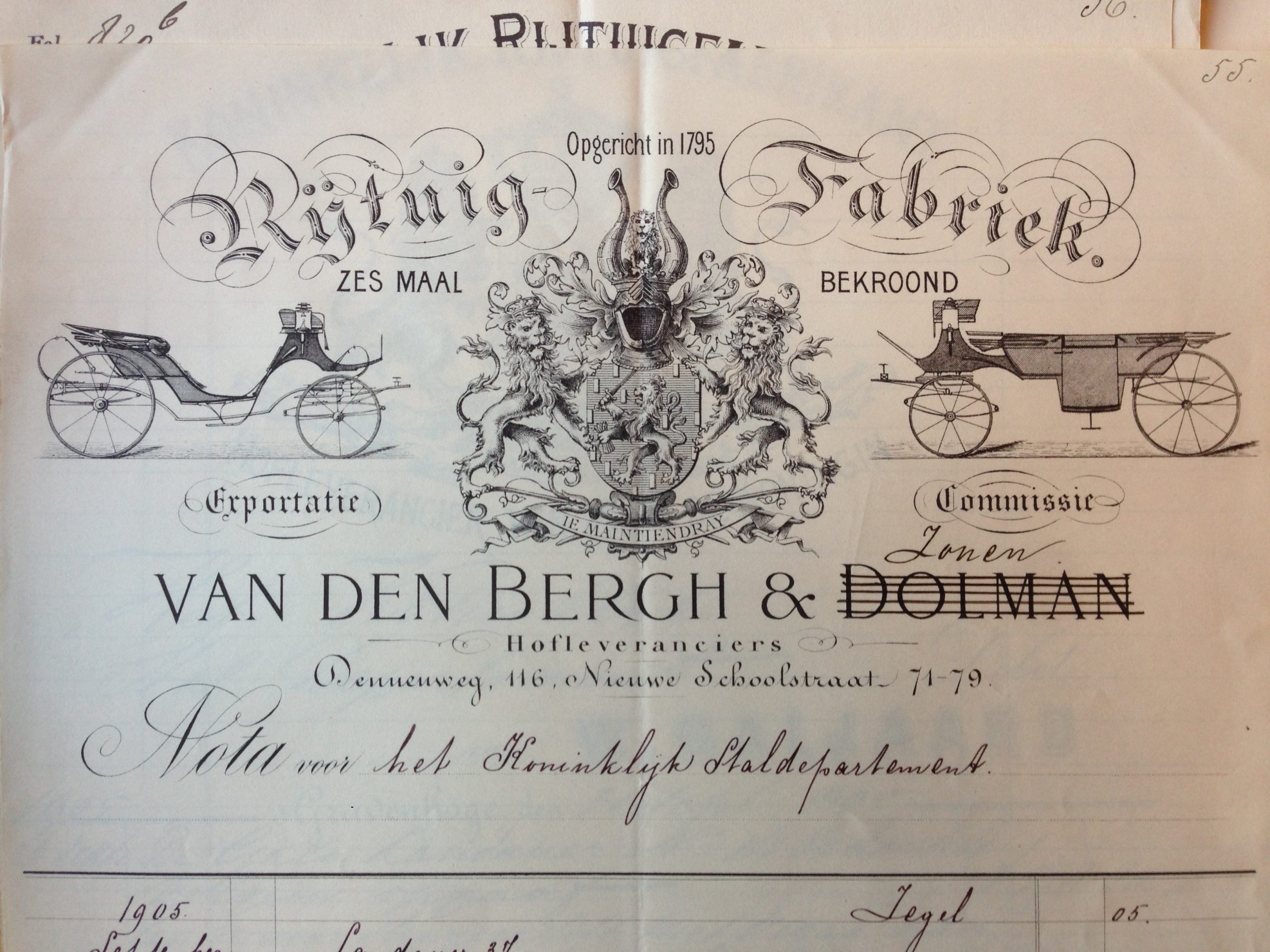In 1886, toen Koning Willem III het geschommel in de Glazen Koets niet langer kon verdragen, heeft de fabriek het op dat moment nog belangrijkste rijtuig van Nederland voorzien van vier extra steunveren. In het boek ‘De Glazen Koets’ dat in 2017 verscheen na de restauratie van dit rijtuig, is precies beschreven hoe dit is gedaan. Niet goed, zo is de conclusie, want getuige de rekeningen in het Koninklijk Huisarchief is na de ingrepen van Van den Bergh de Glazen Koets grondig onder handen genomen door concurrent Hermans. De verhoudingen klopten niet meer en de wielen waren te klein. In ieder geval heeft de koning alleen in 1886 plezier gehad van de extra steunveren, want daarna is hij te ziek om de rijtoer te maken en koningin Emma verkiest als regentes aanvankelijk een ‘gewoon’ galarijtuig. De Glazen Koets staat stil tot 1891. Dan schrijft de Nieuwe Tilburgsche Courant op 20 september over de Glazen Koets waarin koningin-regentes Emma haar entree had gemaakt: “Door ons werd opgemerkt, dat dit prachtige rijtuig, ’t welk in vele jaren niet gebruikt was, een volkomen restauratie en verandering heeft ondergaan. Vroegere jaren rustte dit rijtuig enkel op vier staande veeren met riemen en assen, die met hout overdekt waren. Daar deze constructie echter aanleiding gaf dat het rijtuig te veel stootte, zijn er ter opheffing van dit ongerief nog vier veeren aangebracht, terwijl de assen ongedekt zijn. Daardoor werd verkregen dat het rijtuig zachter veert en gemakkelijker over den weg rolt. Ook het rijke schilderwerk werd gerestaureerd. De Koninkljjke Rytuigfabrikanten Van den Bergh en Dolman wien dit werk was opgedragen, hebben door de fraaie uitvoering er van het bewijs geleverd van hun groote kennis in het rijtuigvak.” Daarmee is in ieder geval antwoord gegeven op een nog openstaande vraag wie en wanneer de assen van de Glazen Koets heeft vervangen. En de naam Van den Bergh blijft onbezoedeld. De onderneming zal, naast kleinere spelers als rijtuigmaker Galjaard en Schimmel in Apeldoorn, tot op het laatst van zijn bestaan de belangrijkste speler zijn voor het grotere onderhoud aan de rijtuigen van de koninklijke stallen.