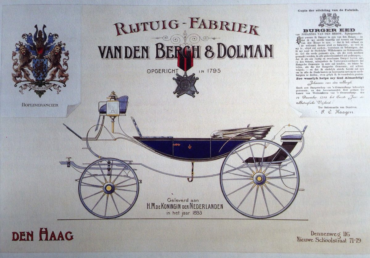 De laatste rijtuigfabrikant Van den Bergh haalt in 1936 zijn pensioen met een veilig baantje als wagenmeester van de koninklijke stallen. De geschiedenis van Van den Bergh als rijtuigfabriek gaat terug tot 1795. In tussentijd is er nazaat geweest die twee jaar in het cachot verdween wegens majesteitsschennis, hielp Van den Bergh zijn grootste concurrent -Hermans- in het zadel en heeft ene Dolman in de fabriek geïnvesteerd en zijn kapitaal er tijdig weer uitgehaald.