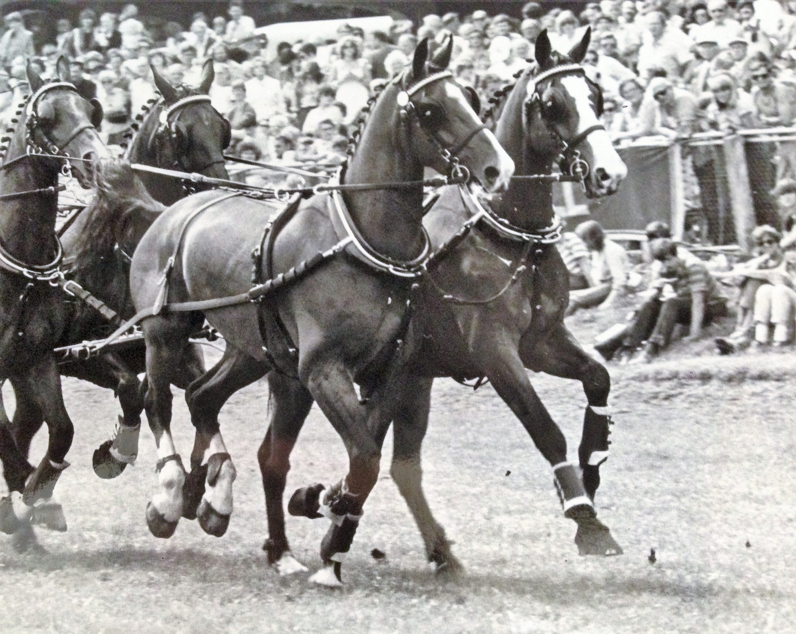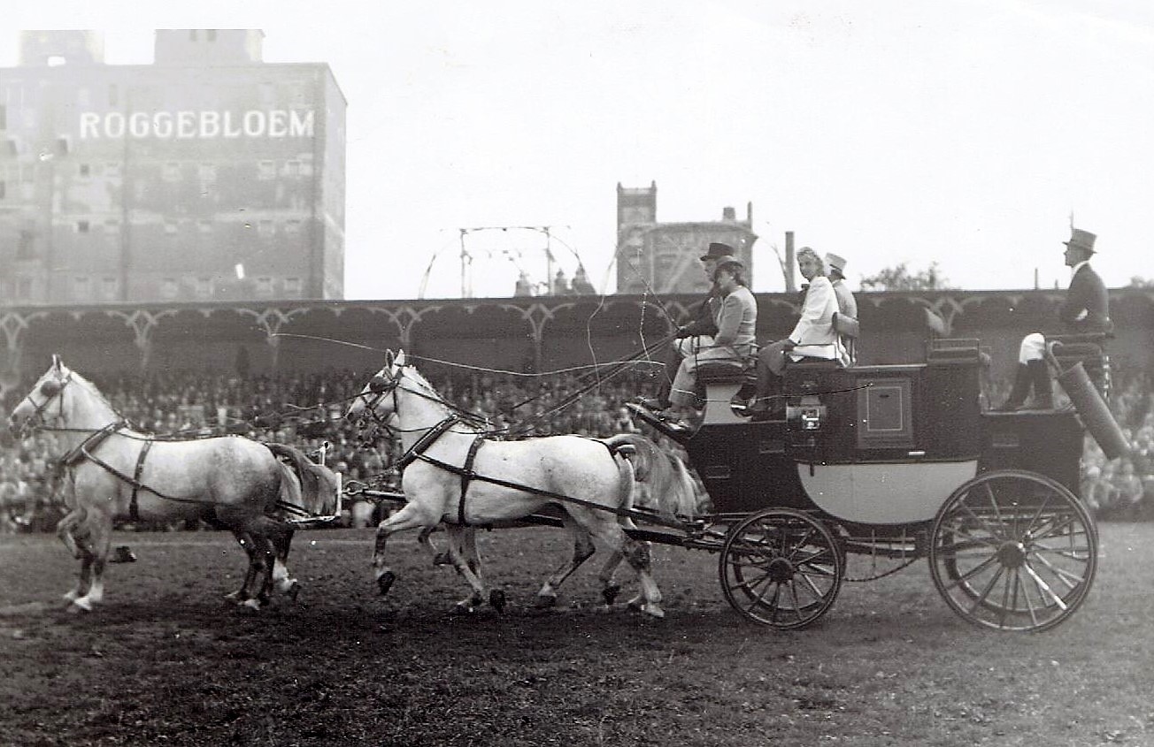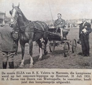 “Het paard Amarilla van den heer Velstra, alhier, heeft op de tentoonstelling te Den Haag in de afdeeling tuigpaarden een eersten prijs behaald. Amarilla is een donkerbruine witvoet en vijf jaar oud”, is het eerste noemenswaardige dat de tweede generatie Velstra in de paardensport van zich laat horen, in het Leeuwarder Nieuwsblad van 28 juli 1928. Stond de prijzenkast al overvol met het zilverwerk en de gouden zwepen van zijn vader, Ritske gaat door met het verzamelen van eremetaal. Wanneer eind augustus dat jaar een keuring voor tuigpaarden in combinatie met een harddraverij onder het zadel plaatsvindt in Dokkum, doet de 24-jarige Ritske Velstra mee met twee paarden, geen Friese dravers als zijn vader, maar ‘tuigpaarden’. De bruinblesmerrie Ramona wint een gouden medaille op de keuring en – jawel – een gouden zweep in de draverij. De andere merrie, Amarilla, krijgt een zilveren medaille onder het zadel. Amper een week later lopen de merries in het tweespan op het concours hippique in Zwolle en gaat de tuigpaardcarrière serieus van start. In de volgende winter lopen de merries en een derde paard, de ruin Aron, voor de slede.