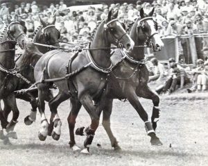 Wat de ‘bovenlanders’, de klassieke tuigpaarden, als voordeel hebben boven de elegante hackney’s is dat zij doordeweeks meewerken op het landbouwbedrijf. Voor de ploeg en voor de hooitakel.