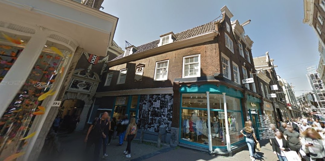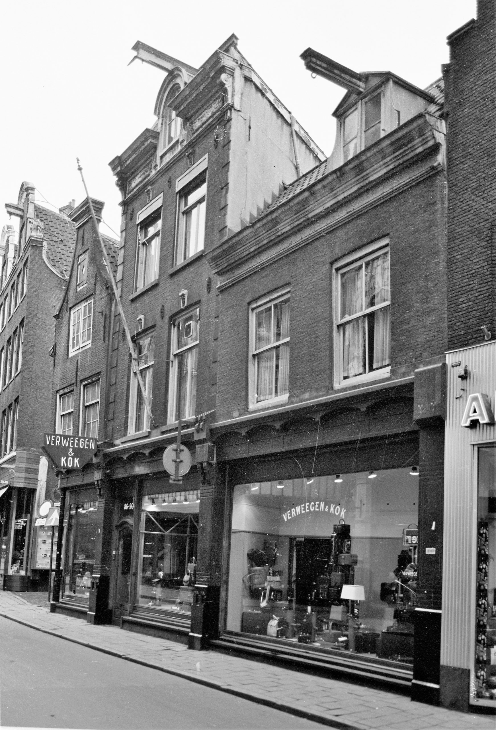Naar links oplopend: de drie panden Kalverstraat 86-90 .