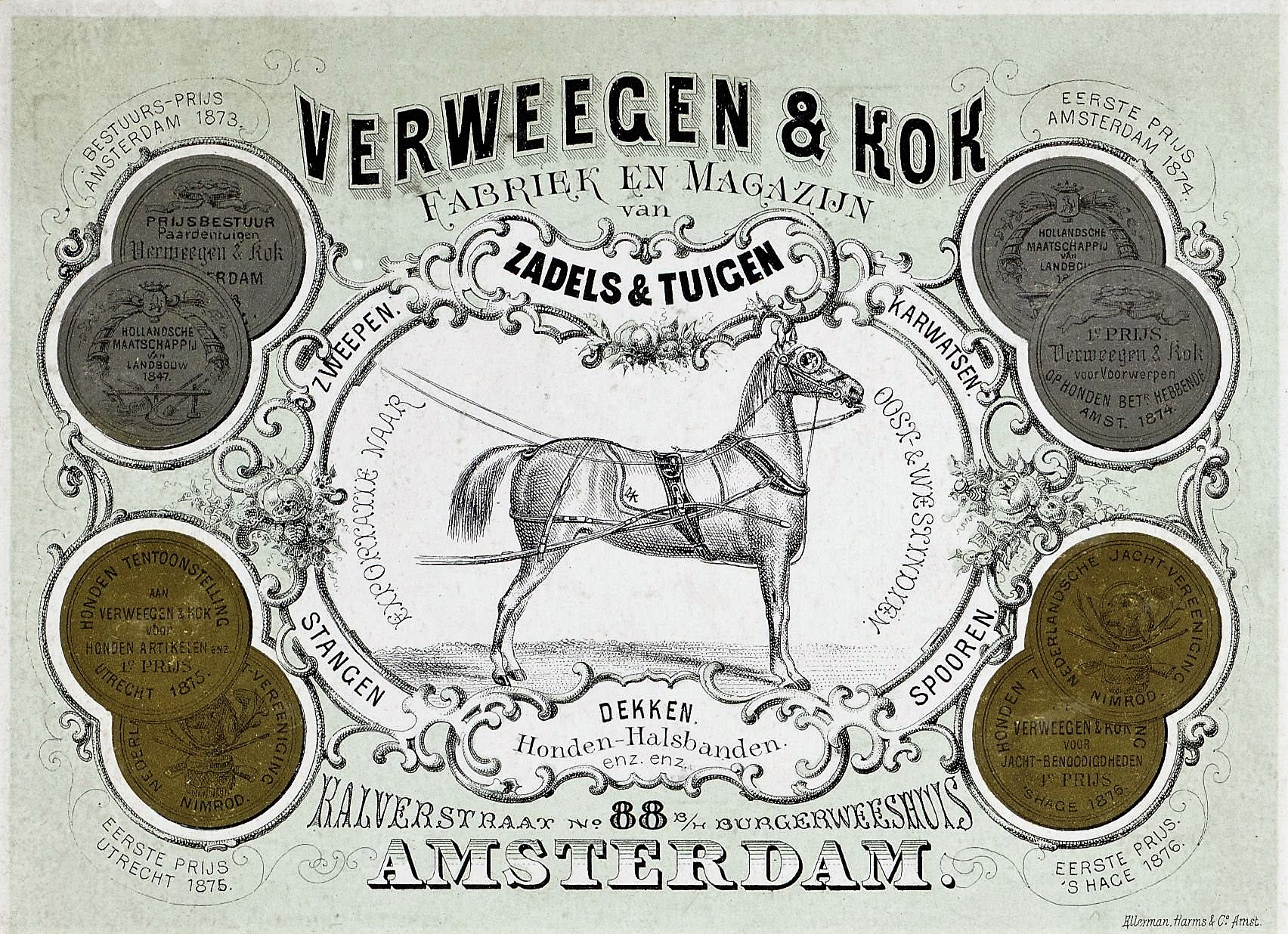 In de tuigenkast van Museum van Loon aan de Keizersgracht in Amsterdam hangt een antiek vierspantuig, dat waarschijnlijk is gefabriceerd door Verweegen & Kok in de Amsterdamse Kalverstraat. Het ligt ook wel enigszins voor de hand dat jonkheer Van Loon zijn tuigen in de 19e eeuw bij een exclusieve zadelmaker in de hoofdstad kocht. Maar wie zegt de naam Verweegen & Kok als tuigenmaker nog iets? Het is een vergeten historie.