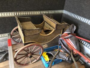 Leukste verrassing kwam echter uit een schuur op het landgoed van het kasteel, tegenwoordig in eigendom van Natuurmonumenten en waar zo goed als vergeten een origineel bokkenwagentje stond te verpieteren. De Stichting heeft zich er gelijk over ontfermt en met dezelfde vrachtwagen als waar de drie rijtuigen in zijn vervoerd, naar het noorden gestuurd, naar het restauratieatelier Stolk als retourvrachtje. Daar gaan we bekijken wat verstandig is om het kleine pareltje te behouden.