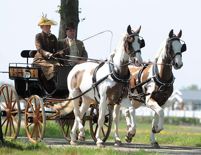 In de equipages van eind 19e eeuw komen sporadisch bonte paarden voor. J. Korthals Altes van Huize Uit den Bosch aan de Spanjaardslaan in Haarlem heeft een vosruin en een bonte merrie die dagelijks voor de coupé of victoria lopen. “Bij Haastrecht is de vorige week overleden zekere B., die om zijn zonderlingheden lang de aandacht had getrokken. Onder een zijner laatste beschikkingen, waaraan gevolg is gegeven, kwam voor, dat de lijkkoets die hem naar het kerkhof te Bodegraven zou vervoeren, met zijn twee bonte paarden bespannen zou worden. De paarden, die na dien rit doodgeschoten moesten worden, leven evenwel nog. Aan de alg. armen te Bodegraven werd door hem 1.500,- gulden vermaakt; van de rente moet jaarlijks een feestje gegeven worden.” (Het Vaderland 22-2-1884).