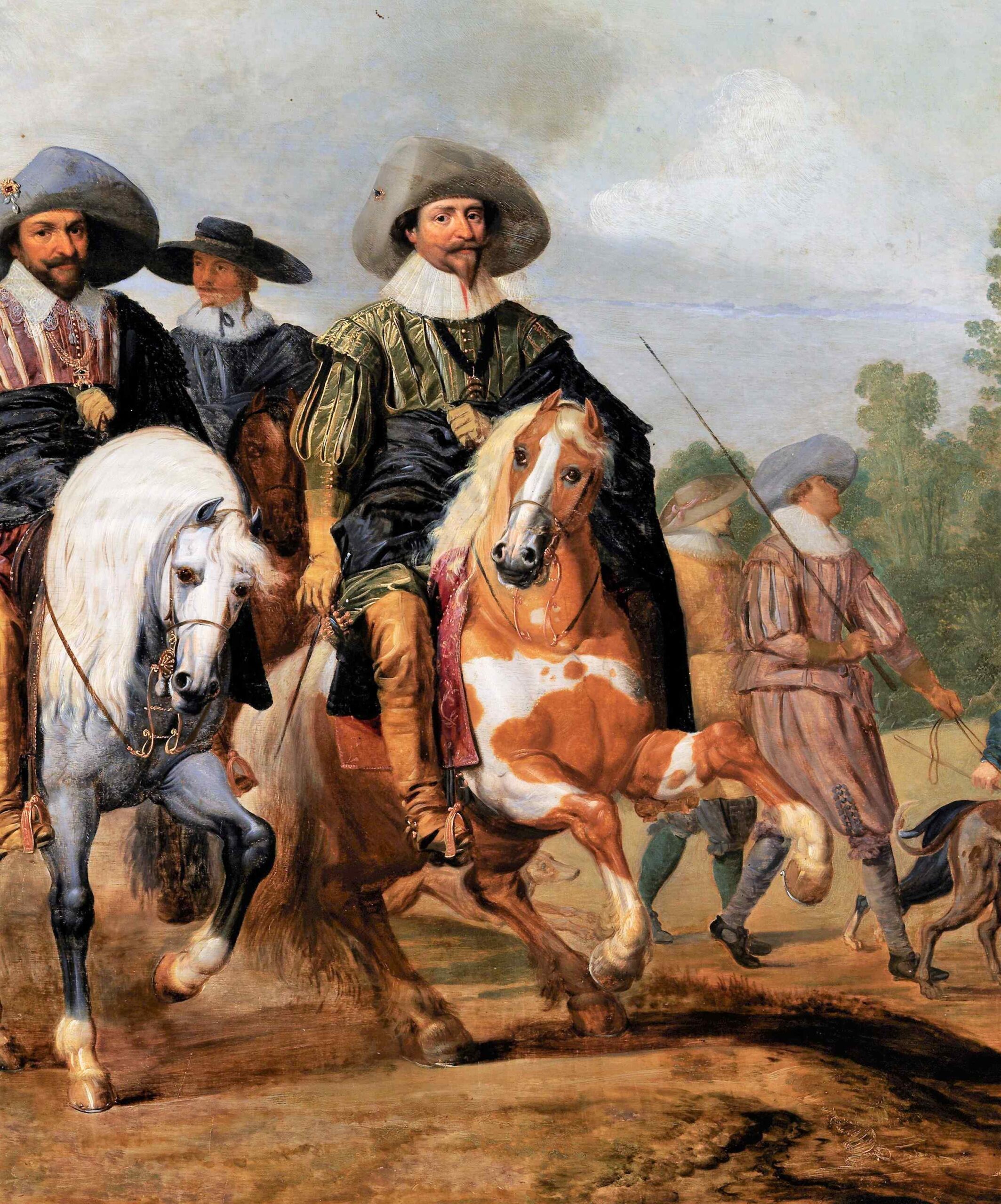 Alle paardenkleuren komen voor op de ruiterportretten van de Oranjes, maar van de drie prinsen van Oranje die Adriaan van de Venne schildert, rijdt Frederik Hendrik op een izabelbonte.