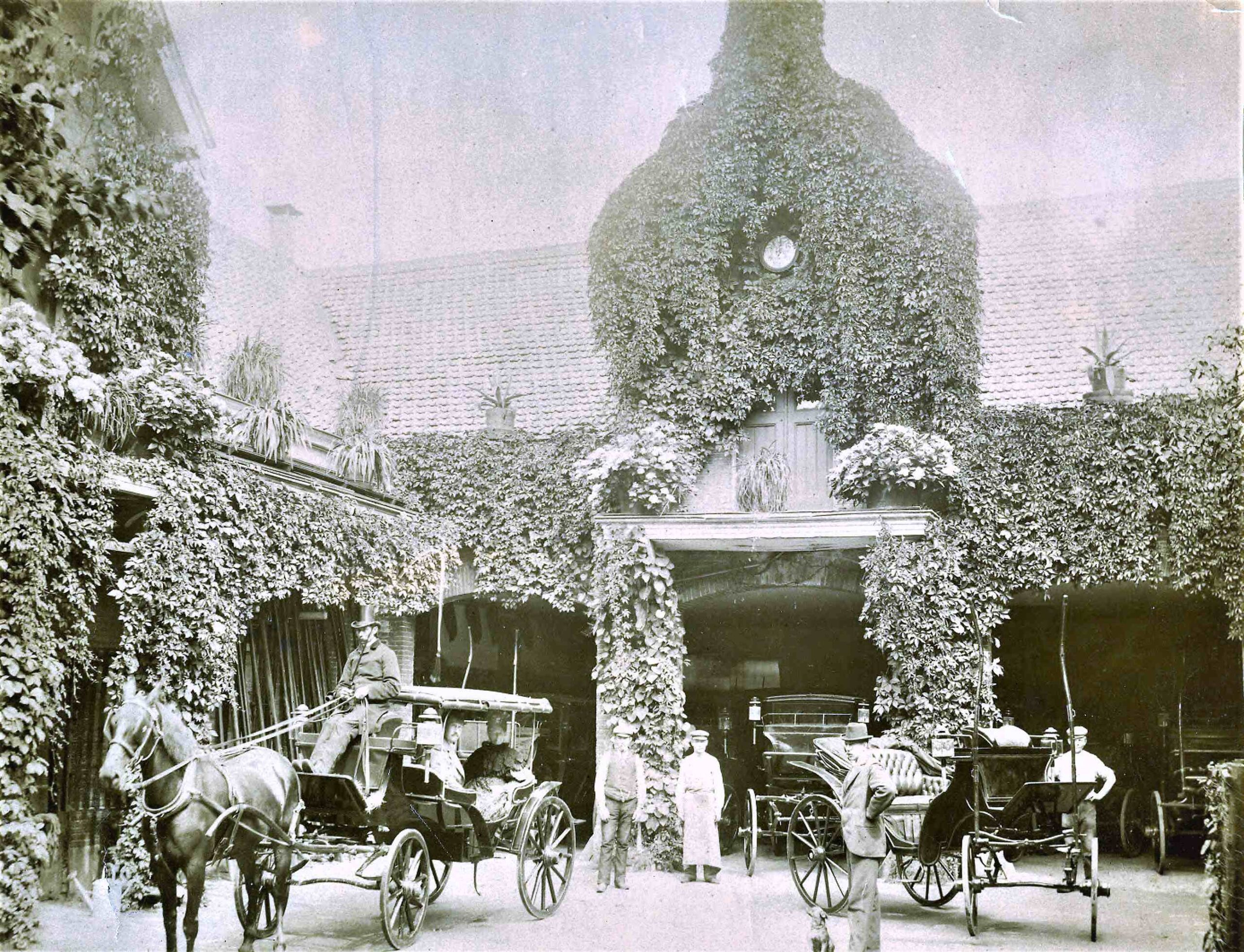 Stalhouder Willem de Rijk haalt in 1855 de Staatscourant vanwege onteigening om de kom van Arnhem uit te breiden. Hij is tenminste de derde generatie die paarden verhuurt; De Rijks heten in de mannelijke lijn allemaal Derk en Willem. De vierde generatie, Dirk (1823-1898), heeft een stalhouderij aan de Vossenstraat en wil uitbreiden door het open terrein aan het Roermondsche plein te overdekken met een pannendak. Het doel is voor rijtuigstalling en de opslag van hooi, stro; Dirk vraagt in combinatie met foeragehandelaar Anton Hoetink uit Zutphen een vergunning aan voor het dak. Maar de gemeenteraad wijst hun verzoek in november 1861 af op advies van de brandweer.