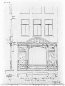 Tekening van een nieuw te plaatsen voorgevel Amstelstraat 19 in 1880.