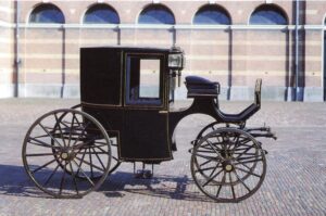 Foto boven: landauer in 1900 aangeschaft door koningin-moeder Emma, nu in het Koninklijk Staldepartement.
