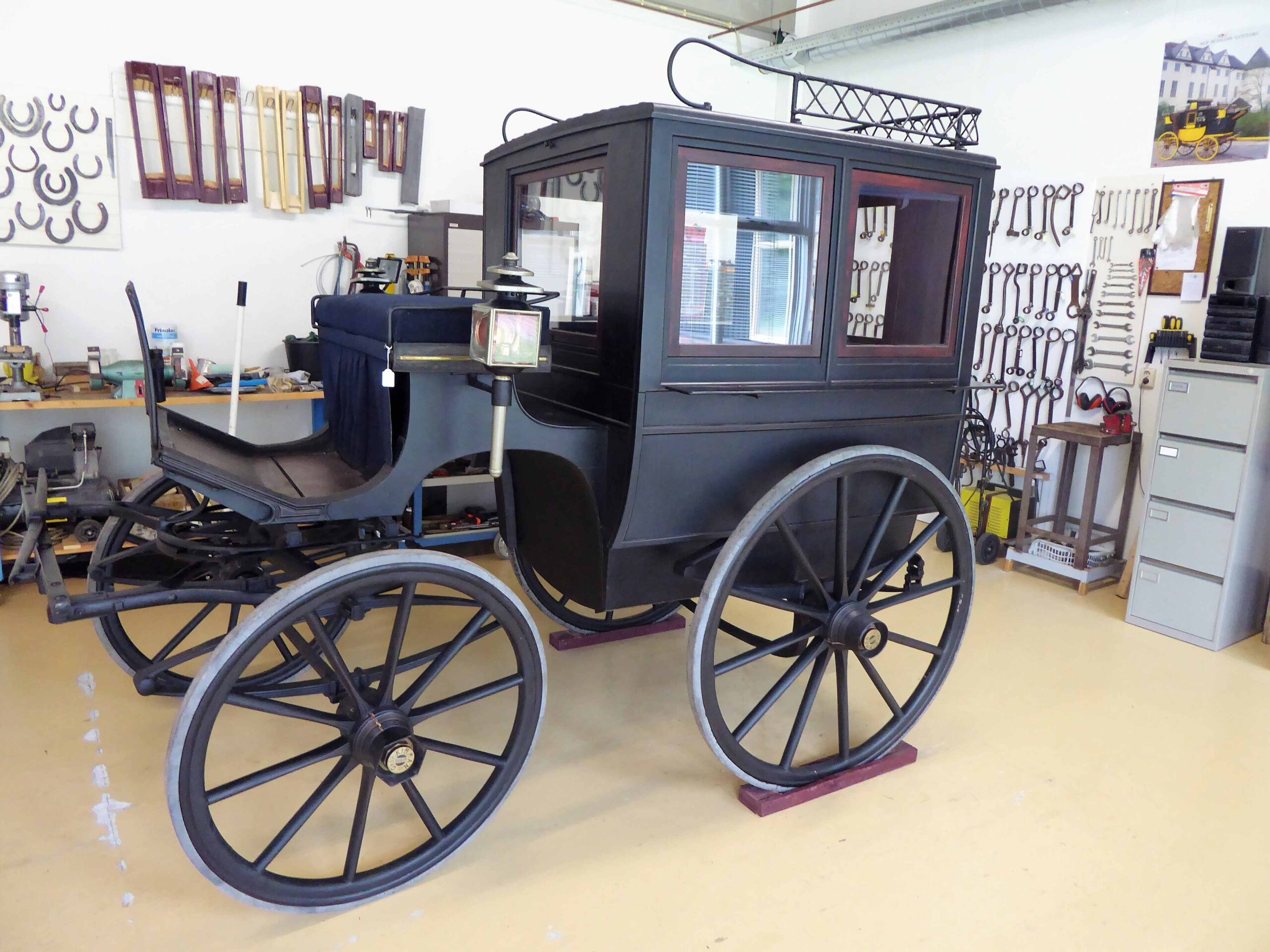 De fabriek maakt juweeltjes van koetswerk. Rijtuigen in de meest uiteenlopende modellen, van luxueuze calèche tot eenvoudige dogcart. Een kenmerk, ook van de landauers en coupés, zijn de zeskantige naafeinden van de voorwielen, die de koetsier en de palfrenier als opstap gebruiken. Die zeskantig vorm geeft grip en is veiliger dan je voet op een glad, rond naafeinde zetten. Van de achterwielen zijn de naafuiteinden rond, die hoeft niemand als opstap te gebruiken.