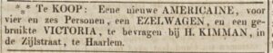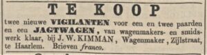 Na een langdurig lijden sterft in Haarlem vader Hendricus op 1 augustus 1860. De dan 23-jarige zoon Johannes Wilhelmus heeft genoeg kennis en vaardigheid in huis om vigilantes en jachtwagens ‘van wagenmakers- en smidswerk klaar’ af te leveren. Hij heeft nog contact met zijn oudere broer aan de andere kant van de oceaan, wat blijkt uit een geregistreerde brief naar Chicago, en ook Johannes biedt nieuwe amèricaines aan.