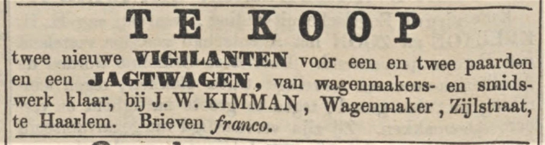 De andere Kimman die in Haarlem neerstrijkt is meestersmid Jacobus (1822-1902). Hij is getrouwd met Johanna Muurman en woont er op het plein buiten het Grote Houthek, terwijl hij achter zijn smederij een wagenmakerij heeft aan de Wagenmakerslaan. Jacobus volgt het voorbeeld van zijn oudere broer Hendricus, die aan rijtuigen meer verdient dan aan het beslaan van paarden.