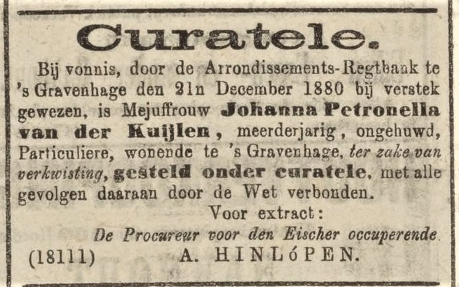 (Dagblad van Zuidholland en ’s-Gravenhage 30-12-1880).