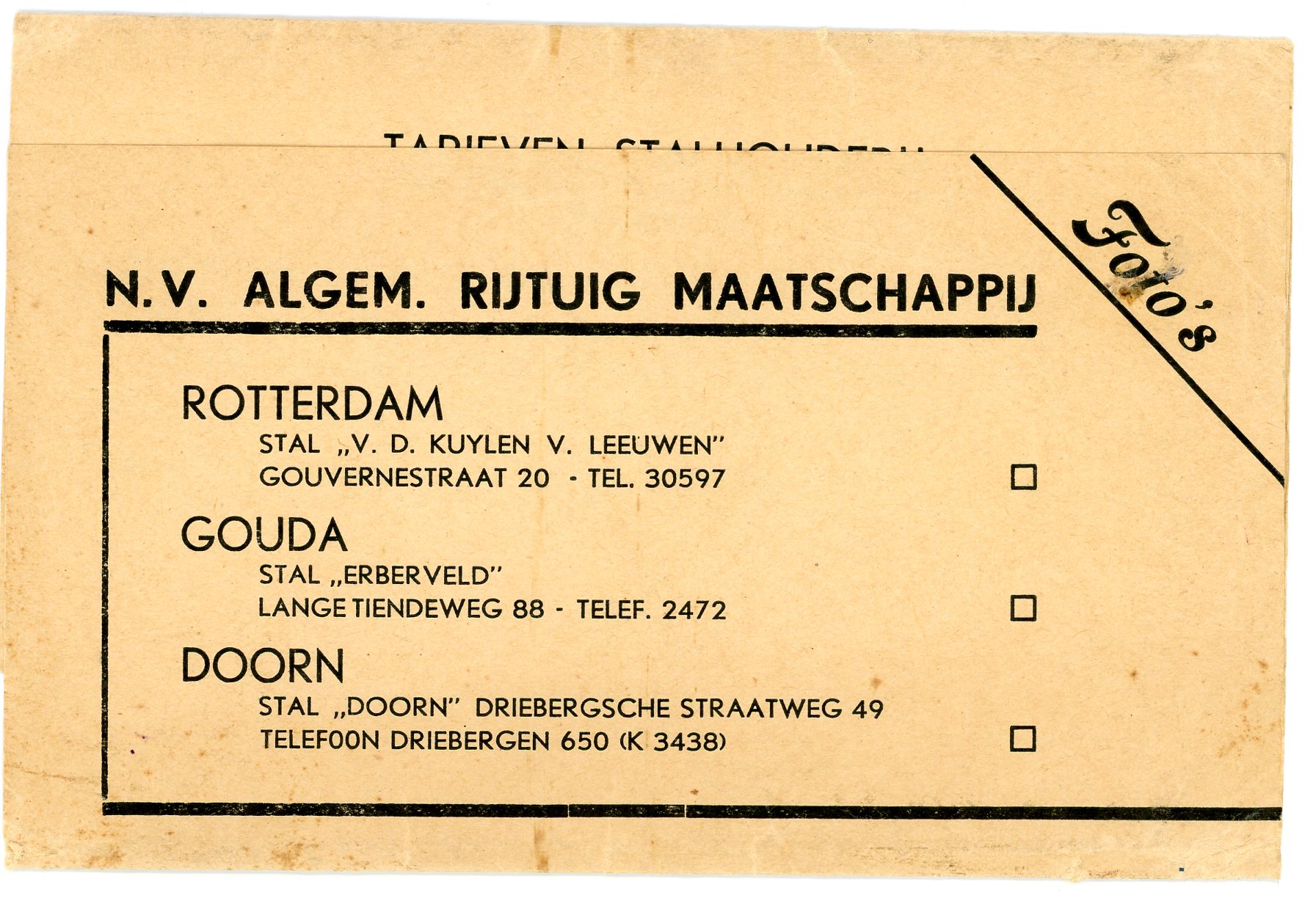 In mei 1916 reizen de Van der Kuijlens de provincies Noord- en Zuid-Holland af om paarden van vijf tot vijftien jaar aan te kopen. De paarden hoeven niet vet te zijn, laten ze vooraf weten. “Kleur en geslacht onverschillig. Levering naar verkiezing direct of later. N.b. 4-jarige paarden met 5-jarige tanden worden ook gekocht.”