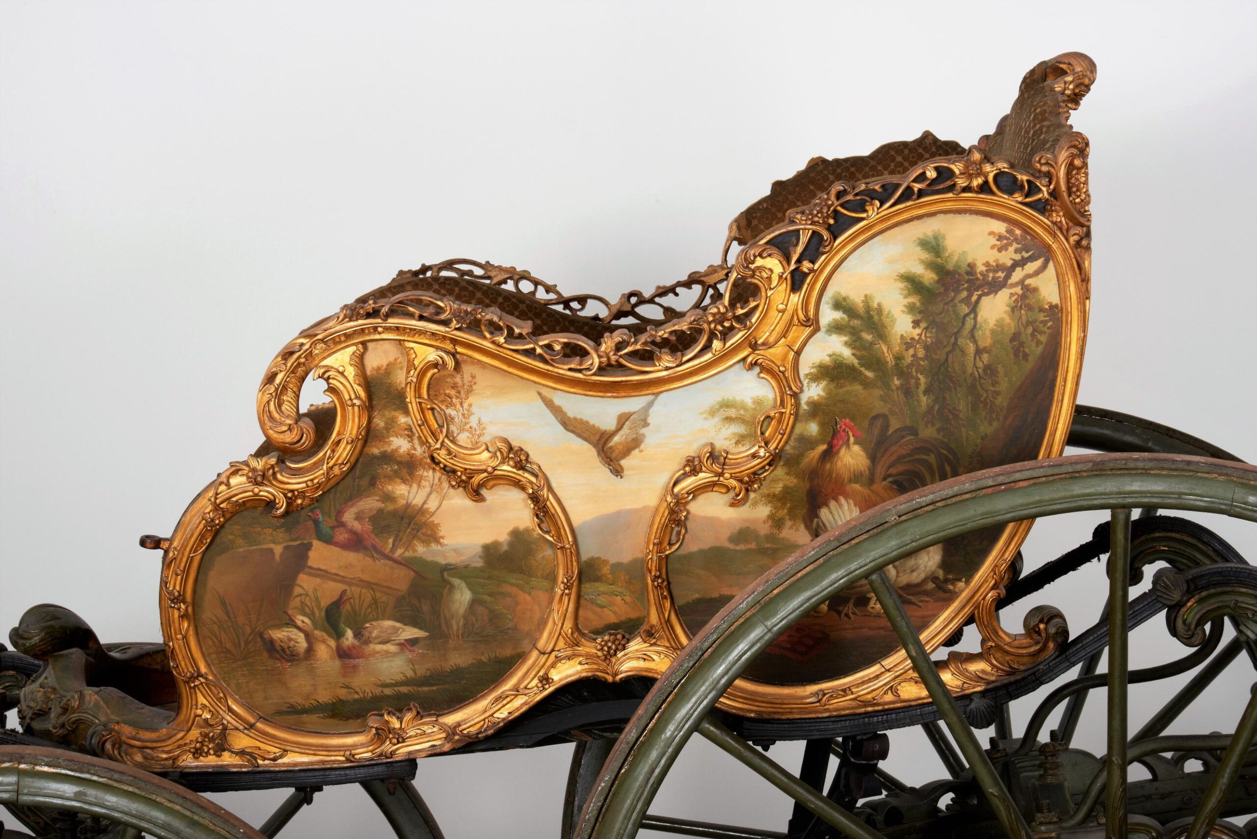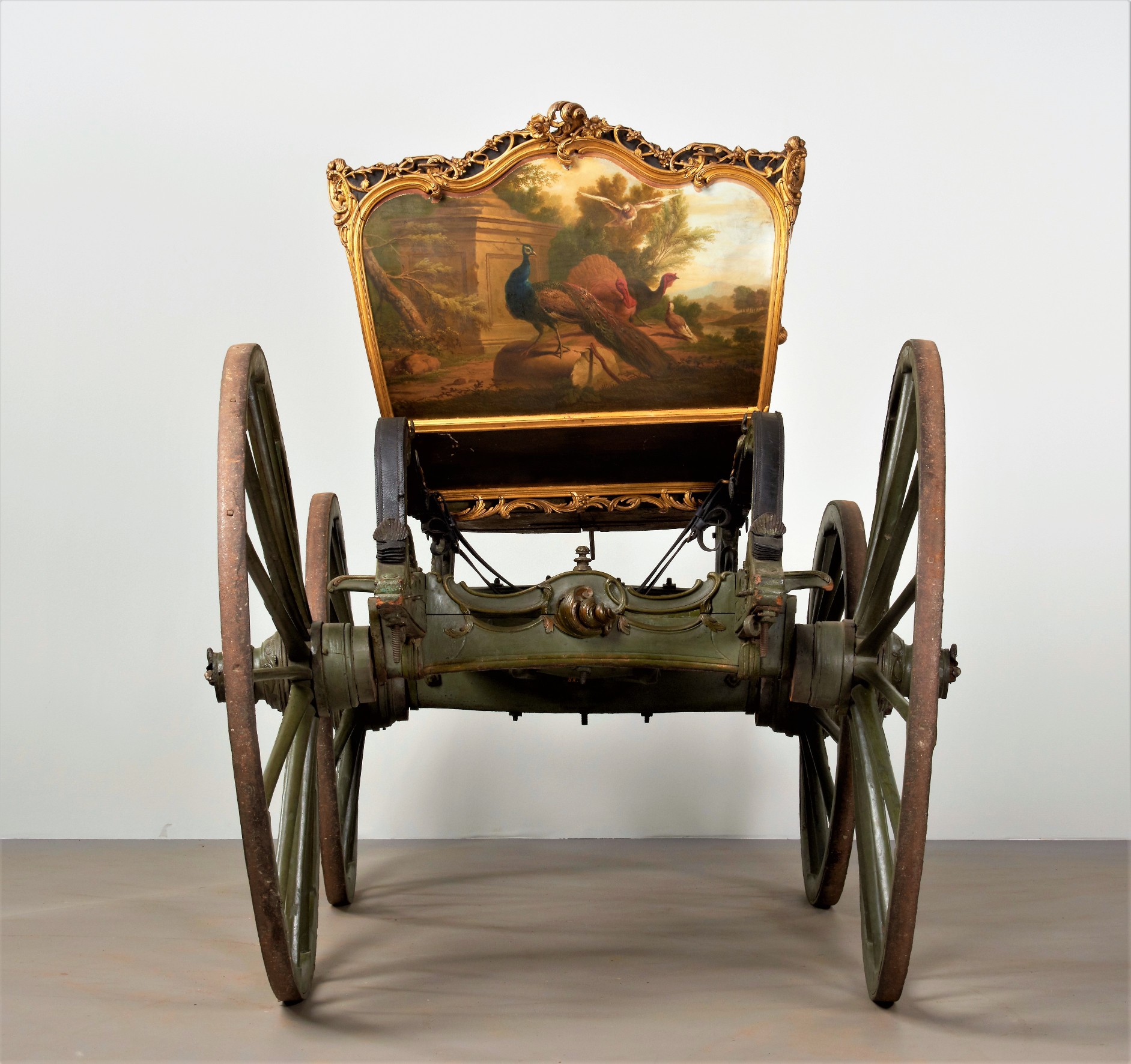 Het Nederlands Openluchtmuseum in Arnhem bezit een voor zijn tijd kostbare phaeton uit nalatenschap van prinses Louise Albertine de Looz Corswarem, geboren jonkvrouw Van Lockhorst. Hij is mogelijk afkomstig uit de kringen van het stadhouderlijk hof in de periode 1770-1780. De panelen van de wagen zijn rondom beschilderd met hoenders, een goudfazant, kalkoenen, pauwen, eenden en duiven door kunst- en behangschilder Aart Schouman, waarmee de datering en de link met het hof aannemelijk is te maken. Het verguldsel en de versiering in rococostijl met accolade- en acanthusvormen sluiten daarbij aan. De afgebeelde hoenderhof met siervogels is een verschijnsel van de Nederlandse buitenplaats, waar de welgestelde, achttiende-eeuwse stedelingen een frisse neus kwamen halen. Het besloten park van de buitenplaats is ook de eerste plek om zonder brokken te maken, en zonder gezichtsverlies als het toch mis gaat, zelf met een span paarden rond te sturen. En laat dat nu precies het functionele kenmerk van de phaeton zijn, zeker de latere modellen. Het is geen stads- of reisrijtuig, maar de eerste sportwagen. “Mensen die willen pronken met hun rijvaardigheid met moeilijke paarden, rijden zelf hun rijtuigen”, schrijft de Fransman André Jacob Roubo. De wagen van het Openluchtmuseum is, zo denkt oud-conservator Wouter Renaud, overdekt geweest met ‘een soort baldakijn’. Het ontwerp komt dan opvallend overeen met wat Roubo afbeeldt in L’art du Menuisier-Carrossier (1769-1775) als ‘calèche’, terwijl hij de phaeton in hetzelfde hoofdstuk weergeeft als een rijtuig waarin de passagiers met de gezichten naar elkaar zitten. Is hier sprake van naamsverwisseling of zijn de verschillende types in de achttiende eeuw nog niet zo strak ingedeeld?