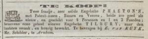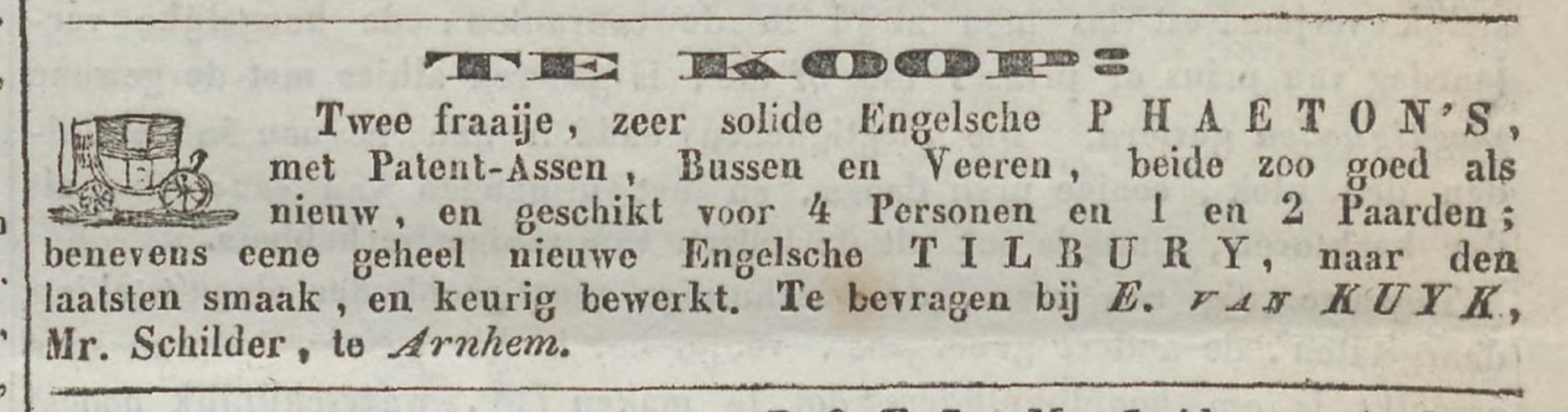– 1842 bruine phaeton ‘uit Engeland’ gekocht, in 1873 publiekelijk verkocht voor ƒ 125,-
