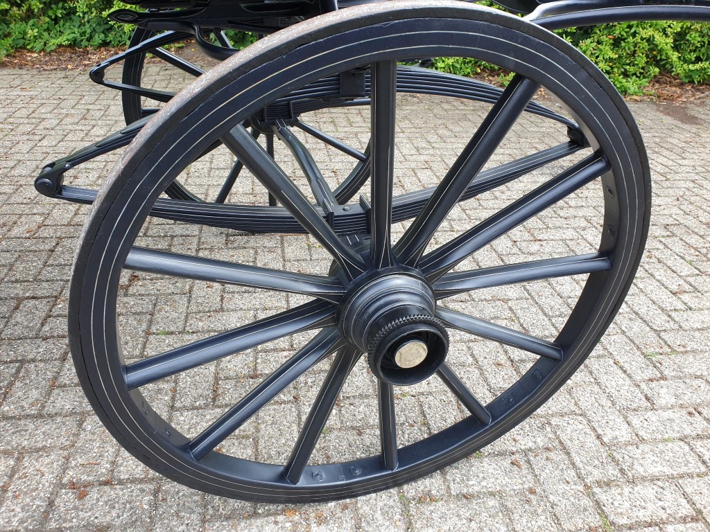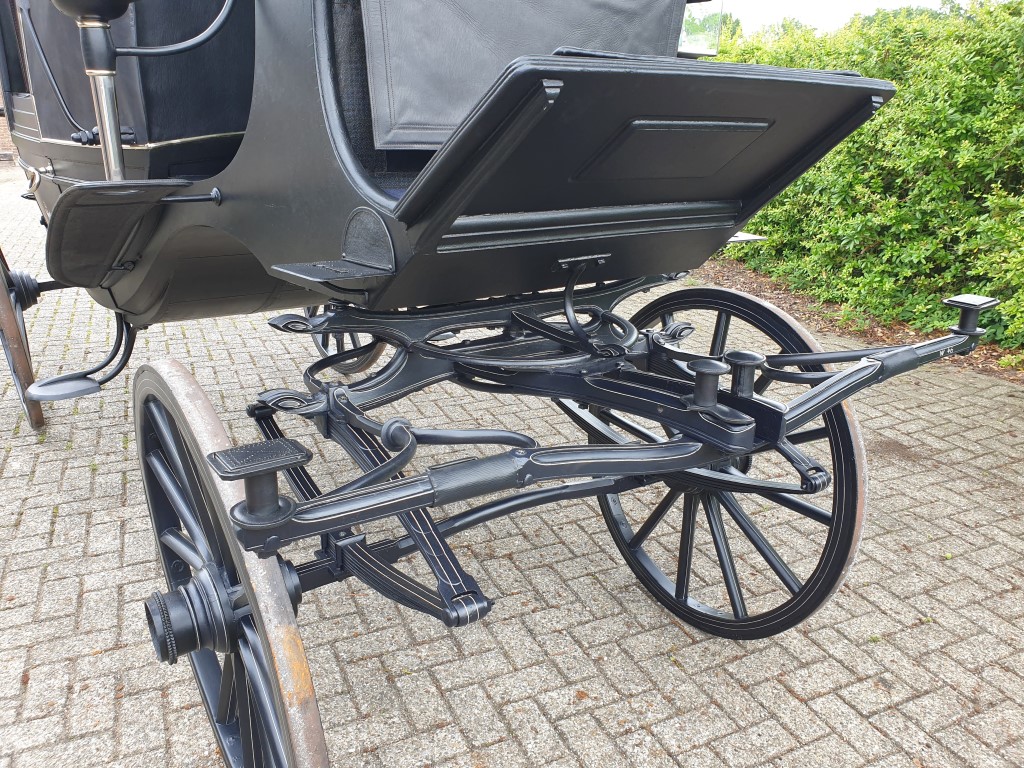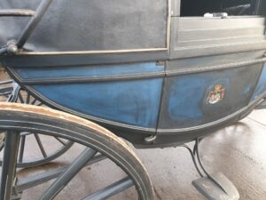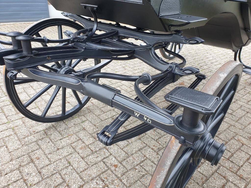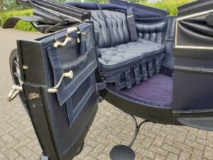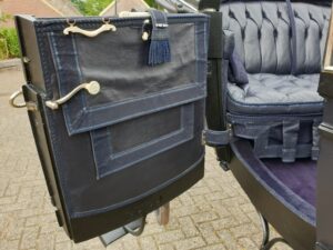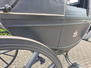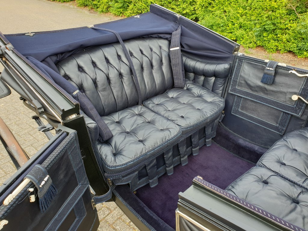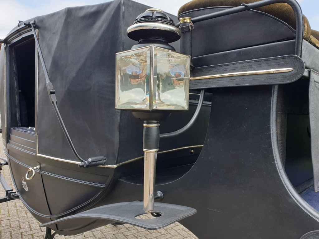 Met lichtblauwe vlekken was het rijtuig uit het depot van het Nationaal Rijtuigmuseum niet meer toonbaar. In het afgelopen jaar zijn in het atelier van Stolk in Balkbrug de restanten van de oude vernis professioneel verwijderd en is het vlekkenpatroon teruggebracht naar een egale, nette verflaag. De aanslag op het zilverwerk is verwijderd, het leer van de bekleding opgepoetst, de kappen zijn opnieuw gespannen. Een verschil van dag en nacht, zie de foto’s onder voor en na. De landauer, gebouwd door Veth in Arnhem, vertrok afgelopen week naar het koetshuis van Kasteel Middachten in De Steeg.