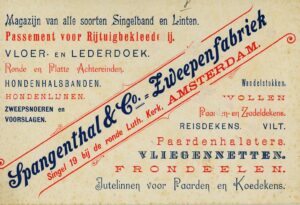 Zonder tuig kan een paard geen vracht treken, zonder zadel is het slecht paardrijden. Net zo goed als ieder dorp zijn wagenmaker had, zo was er de zadelmaker. En die vele honderden zadelmakers hadden gespen en garens nodig die ze kochten bij gespecialiseerde fourniturenbedrijven. In Amsterdam was de Joodse firma Spangenthal de grootste. De zilveren of messing gespen, kroontjes met zes of acht bolletjes, sterk garen dat het leer bijeenhield en het gekleurde trijp op de arrentuigen: het kwam bij hen vandaan. Tot de Tweede Wereldoorlog wreed toesloeg.