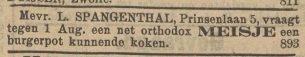 1893 Wolf Spangenthal trouwt met Anna Lob, en het echtpaar woont aan de Plantage Middenlaan 86.