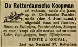 Leer vergaat. Ze maakten vergankelijk werk. En wat ze maakten gaven ze zelden een stempel mee. Dat maakt het lastig om een beeld te vormen van de Nederlandse tuigenmakers in de 19e eeuw. In Rotterdam was de zadel- en tuigenmakerij Beffie een begrip voor slepers, groenteboeren en stalhouders. Ze lieten bij Beffie een tuig maken, repareren of kochten op dit adres halsters en staldekens. De Joodse familie Beffie, ongenadig hard geraakt tijdens de holocaust, verdient een plekje in ons collectief geheugen.