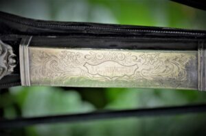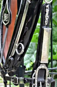 Het tuig resteerde dus nog en Brouwer realiseerde zich dat het iets bijzonders was. Uiteraard door het rijke beslag en de alliantiewapens, maar vooral door de verzilverde en gegraveerde bus-passanten. Volslagen uniek. “Ook bijzonder zijn de schoftjes, met rood trijp bekleed aan de onderzijde. Ik heb dat nog niet eerder gezien”, glundert Brouwer die voor de keuze stond om het in de abominabele staat te laten of om het leerwerk te laten vervangen. “Het was voor de oorlog al niet meer compleet”, verontschuldigt hij zich, dat hij de keuze voor het laatste maakte. Peter Kallenberg uit Leiden kreeg de opdracht. En Brouwer vond een vakman die de zilveren passanten kon reproduceren. “Met name de opvallende, waar de strengen doorheen gaan en waar de naam Juncker op staat, aan de binnenkant waren kapot. Solderen ging niet meer.”