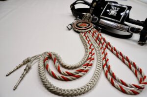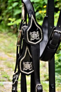 Nadat Brouwer het tuig in handen kreeg, zocht hij contact met een Baron van Tuyll van Serooskerken, een nazaat van de voormalig burgemeester van Voorburg. Die wees hem in de richting van familie in Zeist en gaf hem een doos met twee prachtige nestels: uit rood garen en zilverbrokaat gevlochten koorden als versiering van de jassen van koetsier en palfrenier. Op een oude foto is te zien hoe ze zijn gebruikt voor de equipage van de burgemeester. De koorden passen bij het tuig. Evenals twee kokardes voor op de hoeden van het stalpersoneel, weliswaar door de eeuw heen bevuild geraakt, maar onmiskenbaar in de familiekleuren rood en zilver. In dezelfde kleuren maakte Brouwer twee schabrakjes voor onder de schoftjes van het tuig, kleine kleedjes om de onderkanten van rood trijp te beschermen.