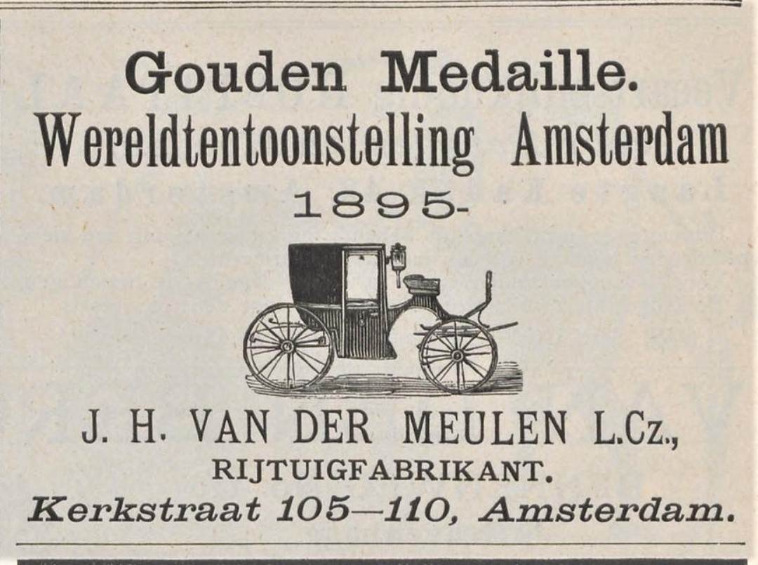 Langer dan twintig jaar heeft de rijtuigfabriek en -handel van Van der Meulen in de Amsterdamse Kerkstraat niet geduurd. Het bleef bij één hoogtepunt: een gouden medaille op de officieuze Wereldtentoonstelling van 1895. Met goud bekroond dus. Bij gebrek aan een opvolger hield Van der Meulen in 1912 een opheffingsveiling, om vervolgens met de verhuur van de panden zijn pensioen zeker te gaan stellen. Toch zijn in diens werkplaats knappe rijtuigen gebouwd.