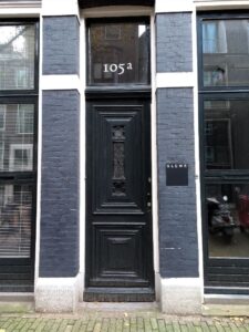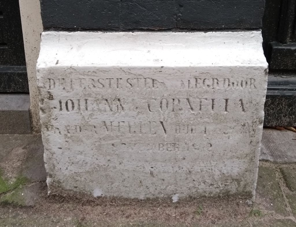 Kerkstraat 105, met eerste steen, even boven straatniveau is beschadigd en slecht te lezen.