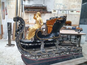 Andere hoofdbrekens bij de slede zijn een ontbrekend kussen. “Voor het kussen van de slee zoeken we inmiddels in Duitsland en Frankrijk… hoop dat we wat vinden”, zegt restaurator Maria Stolk. Ook een vloerkleed ontbreekt. De meeste arrensleden in het Rijtuigmuseum hebben een tapijtkleedje uit de vijftiger jaren, maar de meest authentieke keuze is astrakan, een lamsvelletje.
