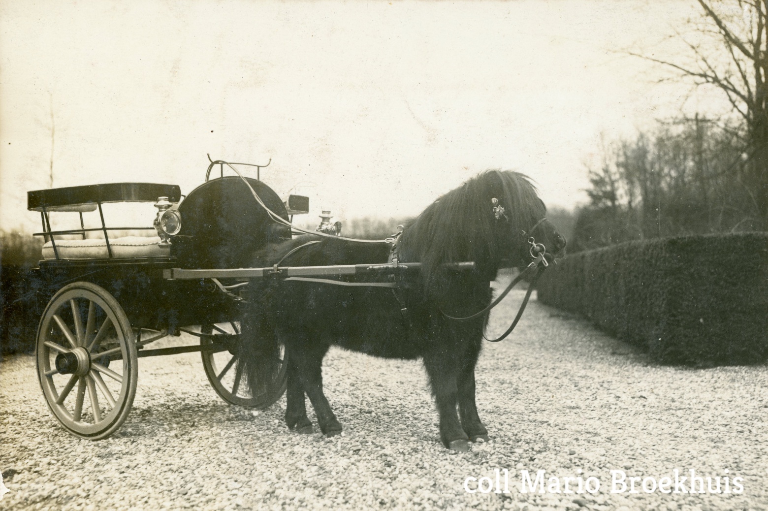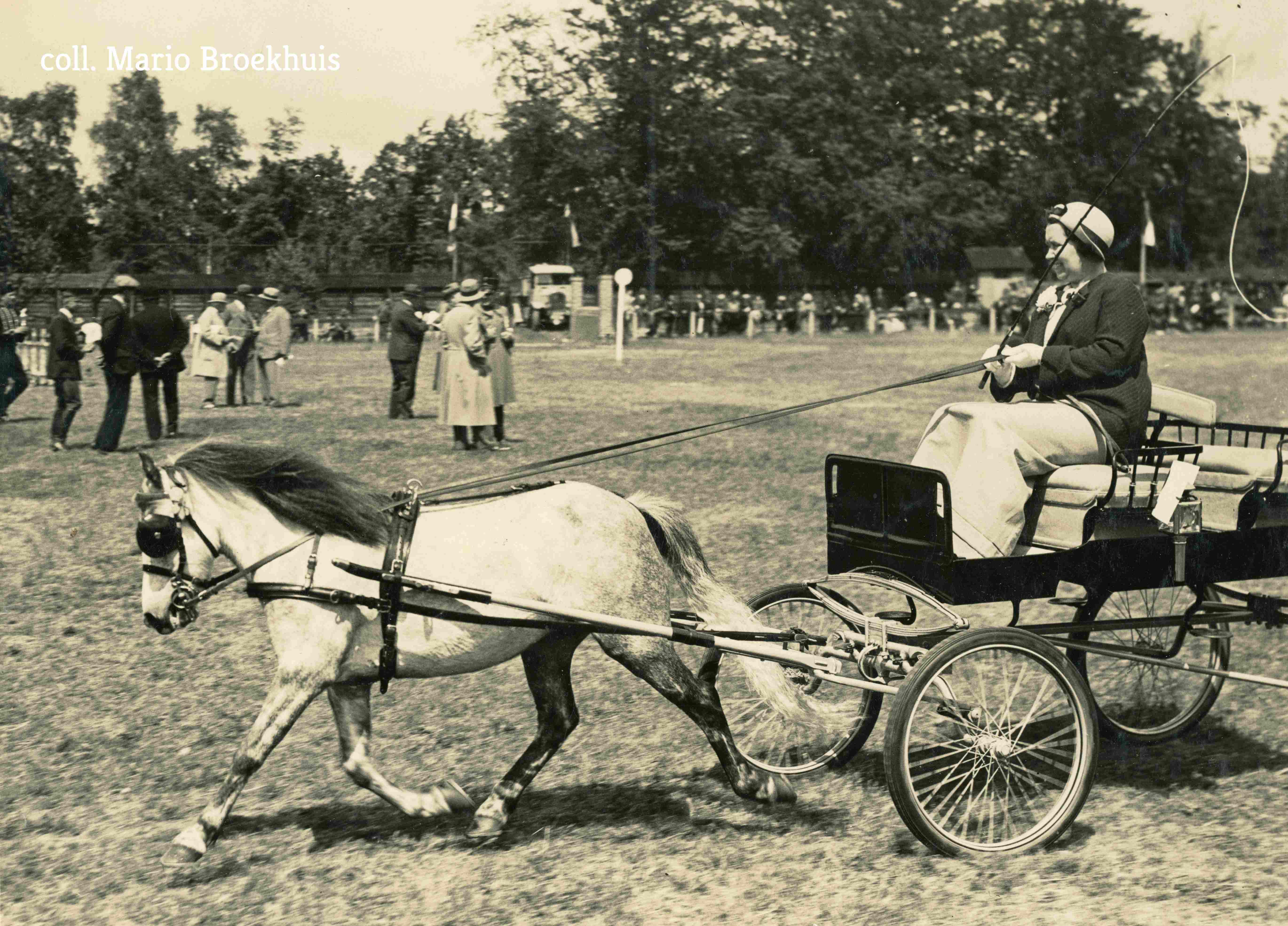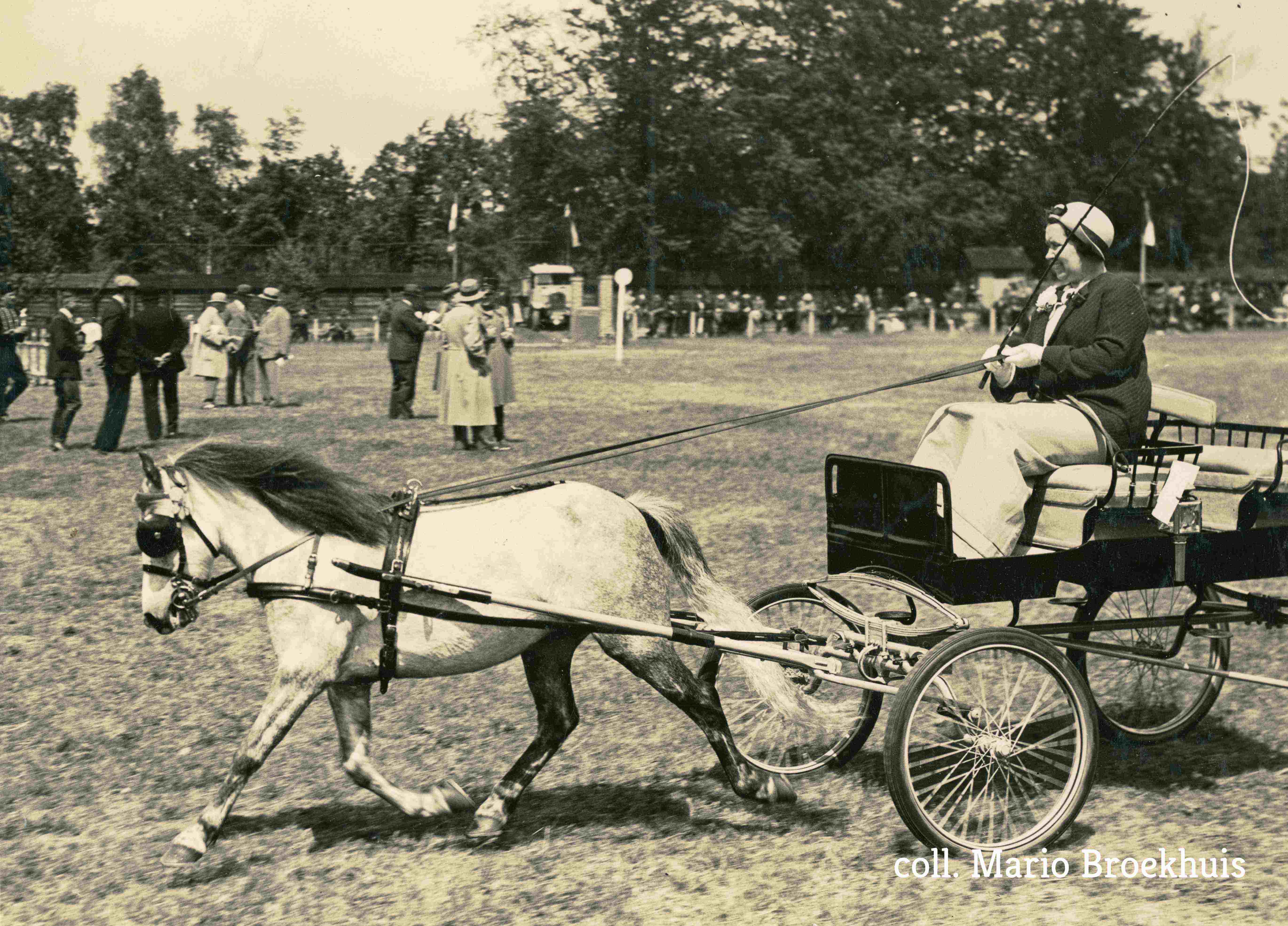 Het jaarlijkse hoogtepunt van de Nederlandse paardenwereld is het elite-concours hippique op Houtrust, ’s-Gravenhage. Daar komt de bovenlaag van de bevolking bijeen om de beste paarden te showen en te bekijken. Een van de vaste deelnemers is de Amerikaanse miljonair Walter Winans, een kleurrijk figuur door de manier waarop hij zichzelf op de concoursen in Londen, Parijs of ’s‑Gravenhage in de schijnwerpers zet, telkens door iets aparts te presenteren, zoals trojka’s uit zijn geboorteland Rusland. “Echter moest de heer Winans toch weer iets origineels vertoonen. Vooreerst zijn troika, vervolgens een miniatuurpaardje, zoo groot als een collie, dat voor een wagentje gespannen door een groom werd voorgereden en een uitbundig succes had”, bericht de Revue der Sporten over Houtrust in 1909, met als toevoeging dat het om een shetlander gaat. Het diertje oogt als een veulen.
