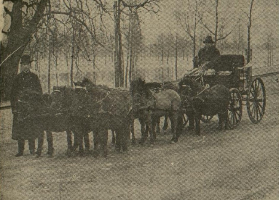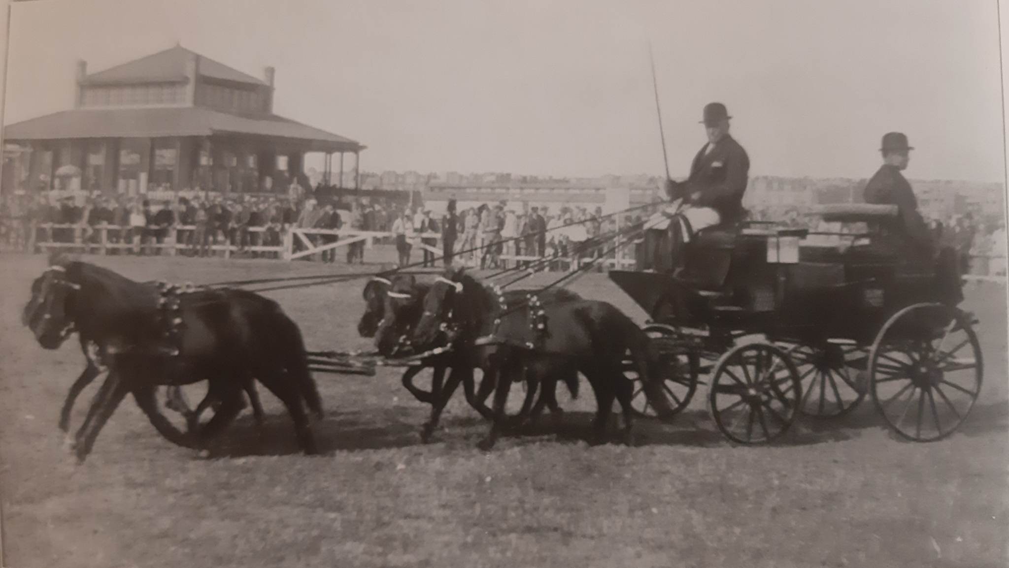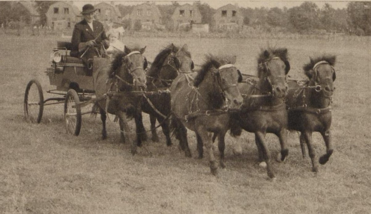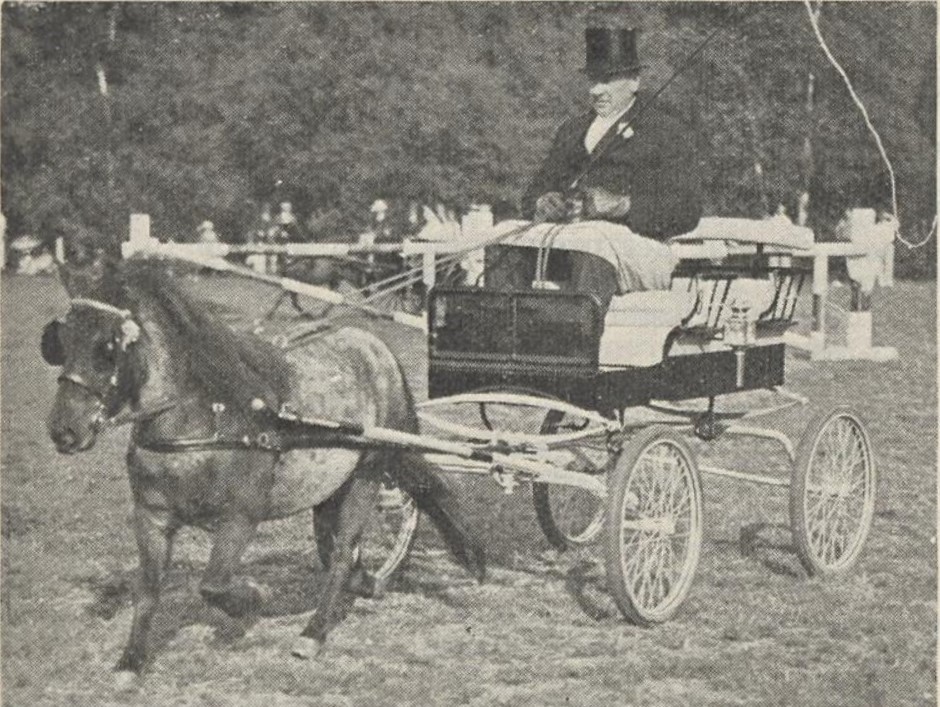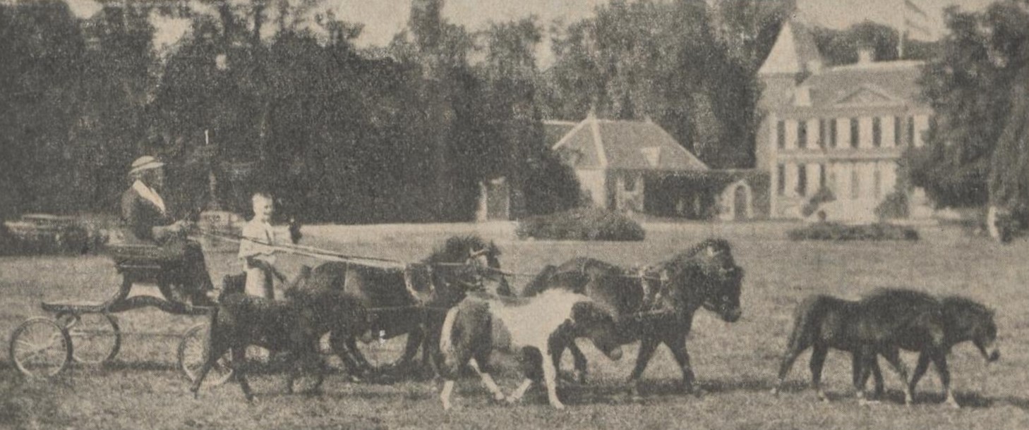 Het jaarlijkse hoogtepunt van de Nederlandse paardenwereld is het elite-concours hippique op Houtrust, ’s-Gravenhage. Daar komt de bovenlaag van de bevolking bijeen om de beste paarden te showen en te bekijken. Een van de vaste deelnemers is de Amerikaanse miljonair Walter Winans, een kleurrijk figuur door de manier waarop hij zichzelf op de concoursen in Londen, Parijs of ’s‑Gravenhage in de schijnwerpers zet, telkens door iets aparts te presenteren, zoals trojka’s uit zijn geboorteland Rusland. “Echter moest de heer Winans toch weer iets origineels vertoonen. Vooreerst zijn troika, vervolgens een miniatuurpaardje, zoo groot als een collie, dat voor een wagentje gespannen door een groom werd voorgereden en een uitbundig succes had”, bericht de Revue der Sporten over Houtrust in 1909, met als toevoeging dat het om een shetlander gaat. Het diertje oogt als een veulen.