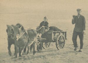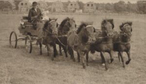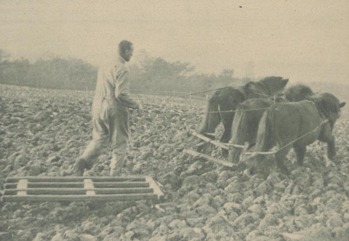 Weekblad De Boerderij neemt in januari 1935 een kijkje op De Vennen, waar de pony’s hard meewerken om het landgoed van dertig hectare te onderhouden: “De stevige bouw doet reeds op het eerste gezicht een groote trekkracht vermoeden. En inderdaad is die veronderstelling juist. Voordat men op De Vennen van de ‘Nieuwe inzichten inzake grondbewerking’ van ir. O.J. Cleveringa had gehoord, werd er met een vierspan meerdere malen tot op 40 cm diepgang geploegd. Trouwens ook de hierbij gegeven afbeelding van het boomentransport is wel in staat om een indruk van het verplaatsingsvermogen van deze paardjes te geven. Op een boerenkar wordt langs een sintelweg van eenige kilometers door een tweetal ponies regelmatig een last van 1.000 kg vervoerd. Dat daarnaast ook het uithoudingsvermogen in orde is, is niet alleen in ’t werk, maar o.a. ook voldoende in de bekende rit van Mevr. Simon Thomas met een van haar vierspannen gebleken. De daarvoor gebezigde ponies hebben bijna 8 uur aan één stuk gedraafd. Het is echter niet mogelijk een sneller tempo te forceeren.”